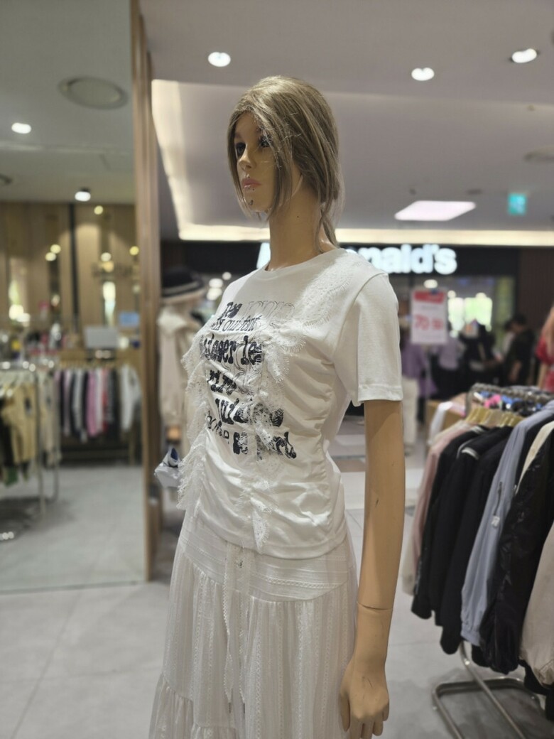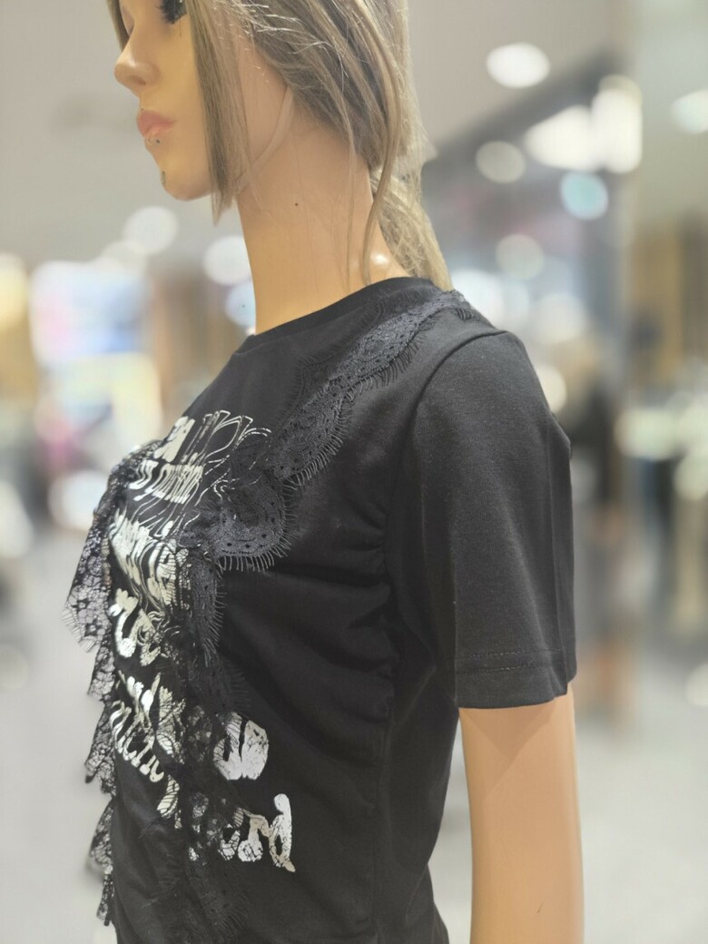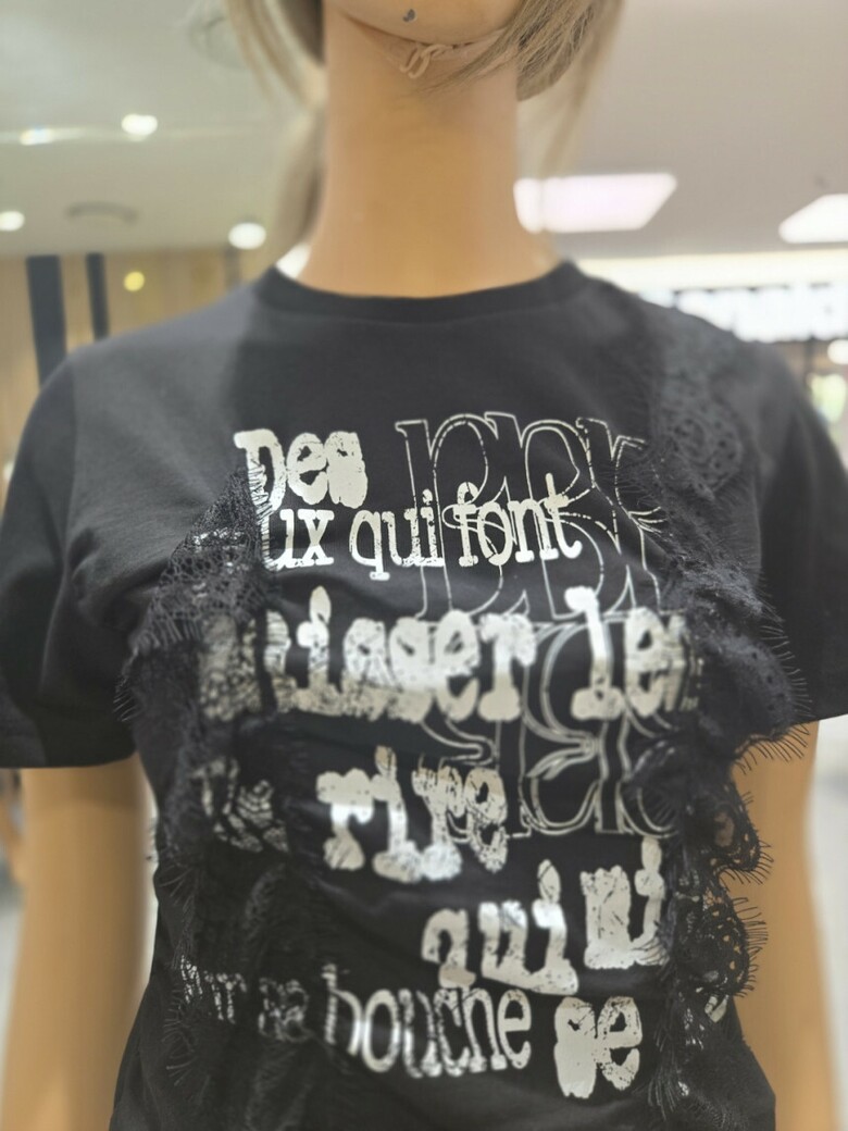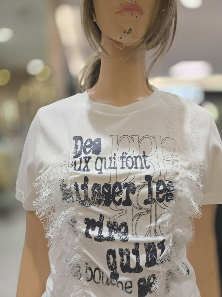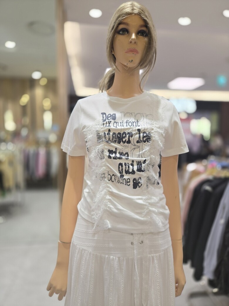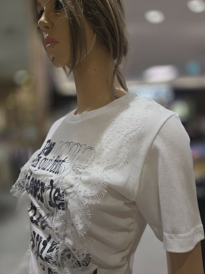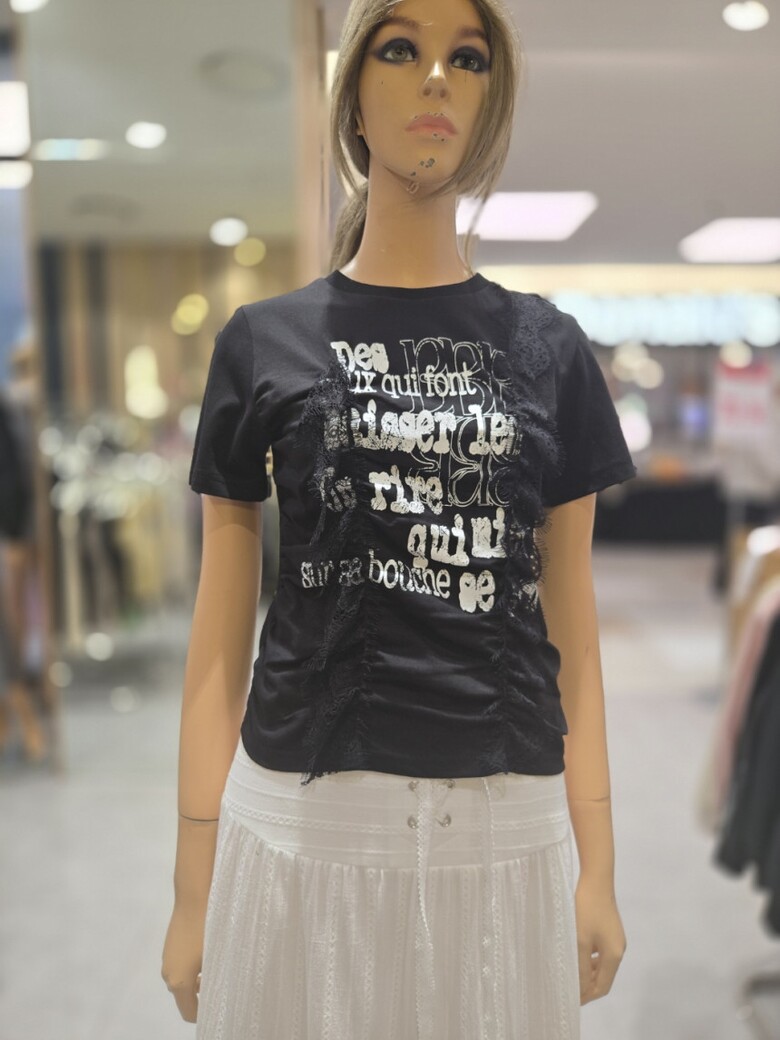 레이스 패치 그래픽 반팔 티셔츠 ER2OTH-58