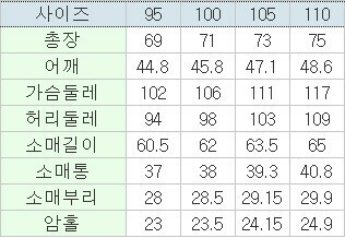 | 3. 치수 | 95,100,105,110 |