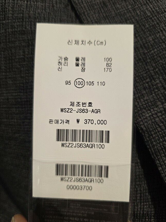 안감 : 폴리에스터 100%