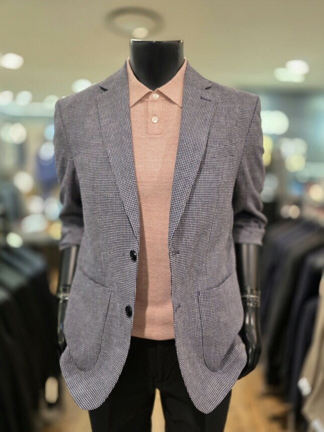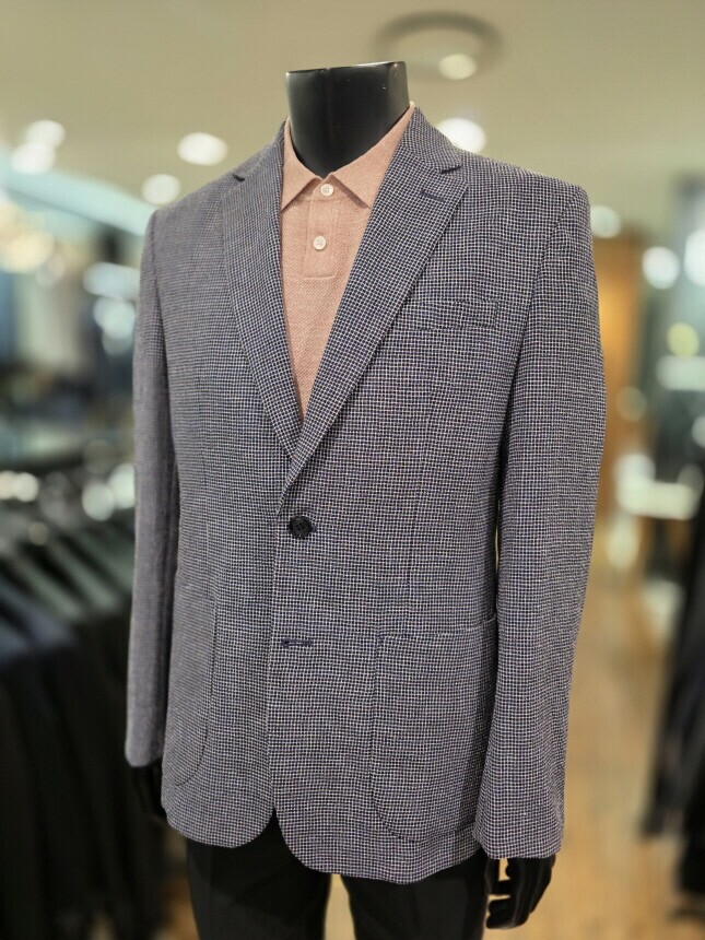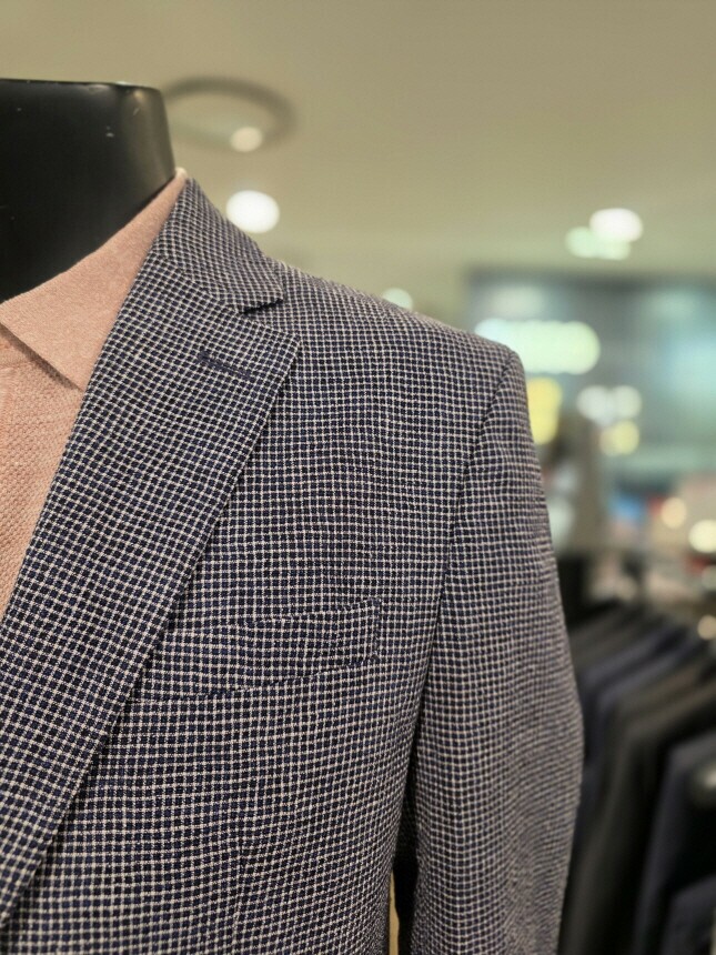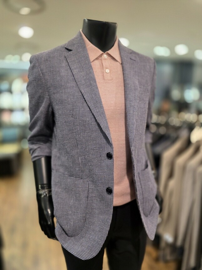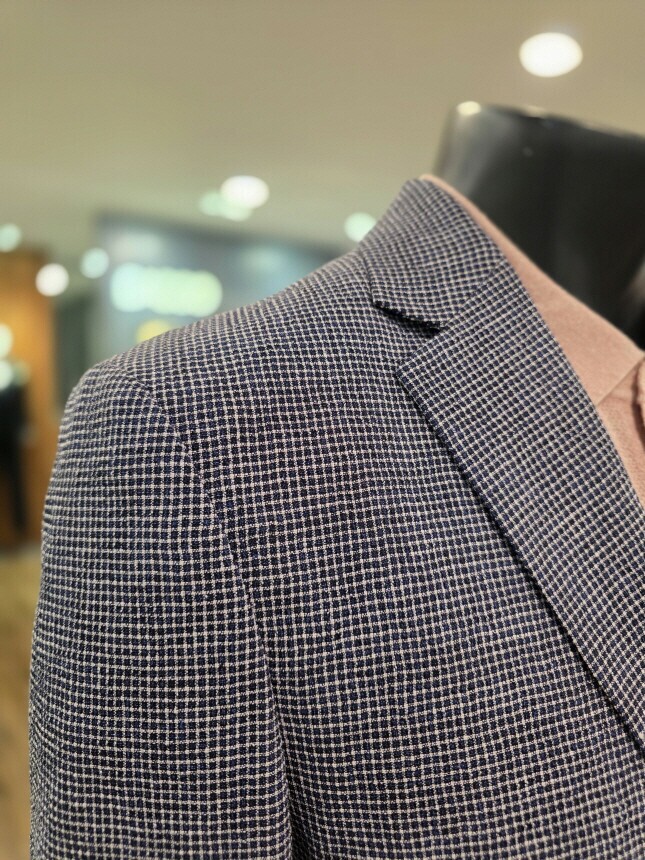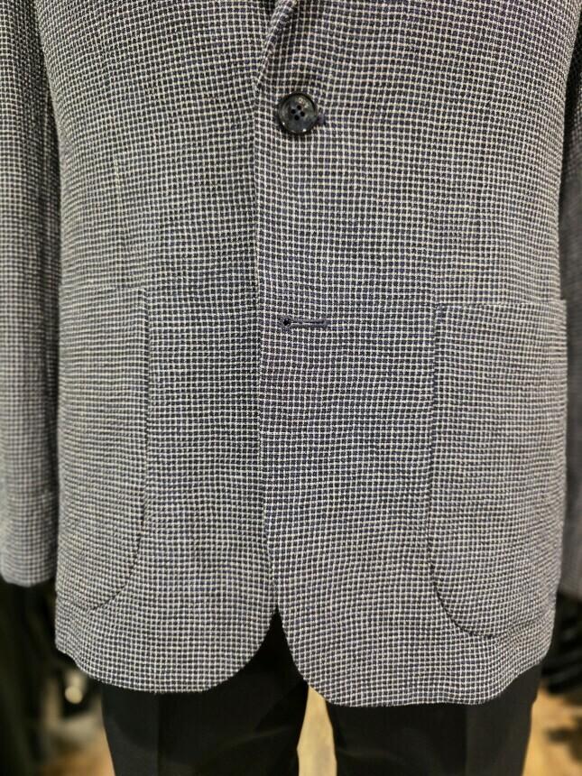 [바쏘옴므] Z2JS65A 25년 S/S 블루 잔체크 스트레치 캐쥬얼 재킷