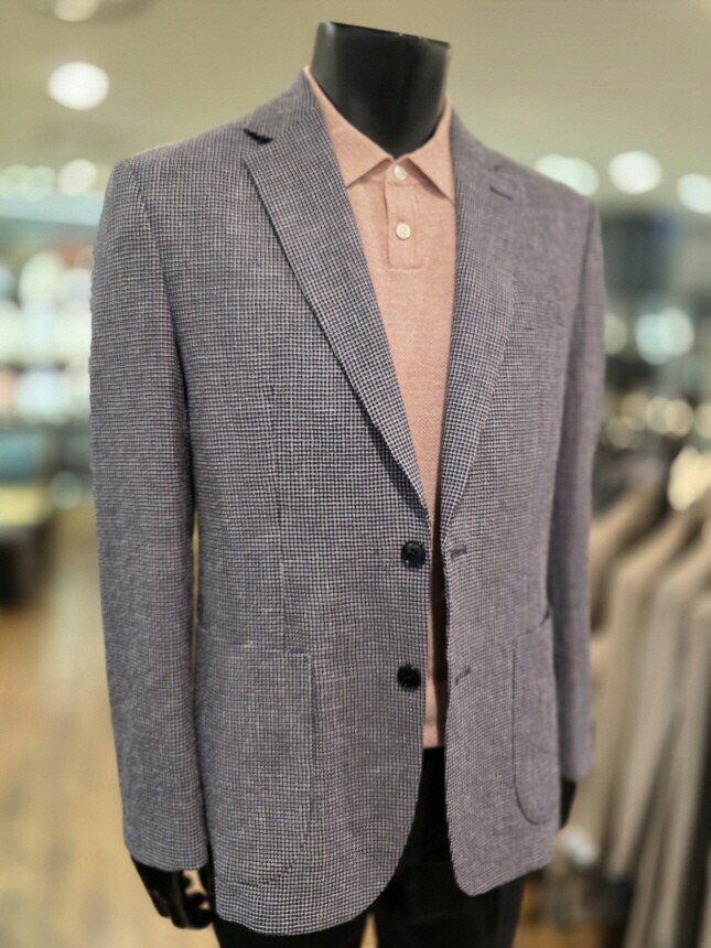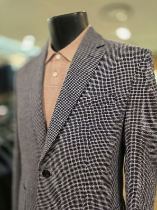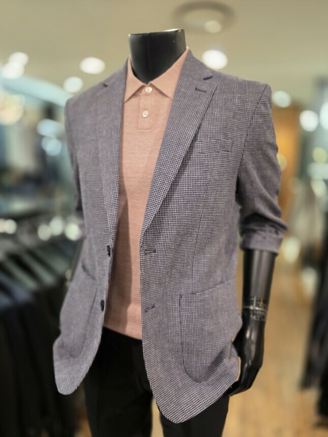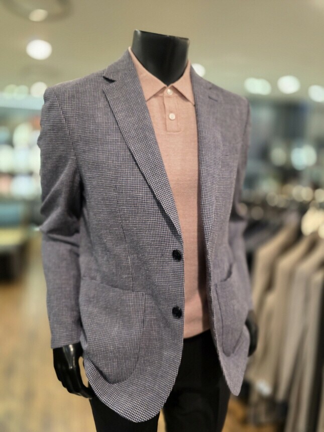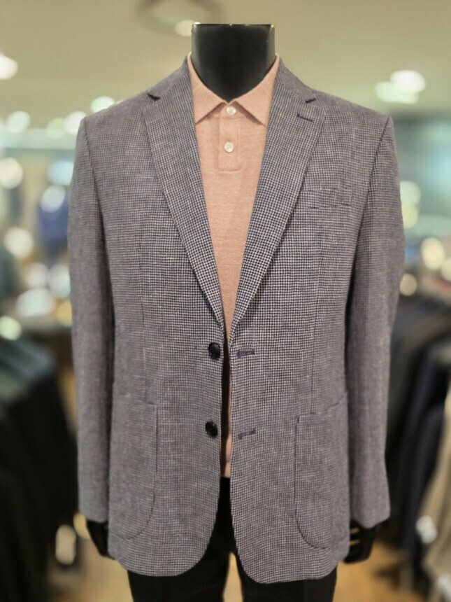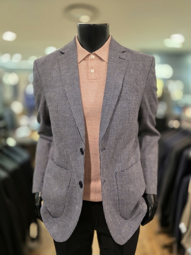[바쏘옴므] Z2JS65A 25년 S/S 블루 잔체크 스트레치 캐쥬얼 재킷