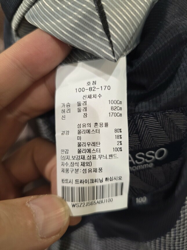 겉감 : 폴리에스터 80% , 마 18% , 폴리우레탄 2%