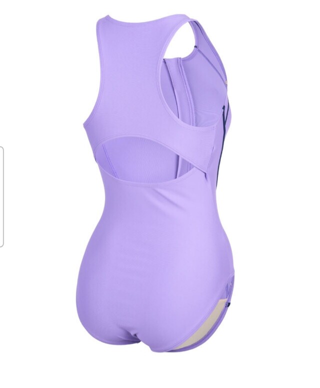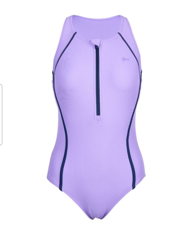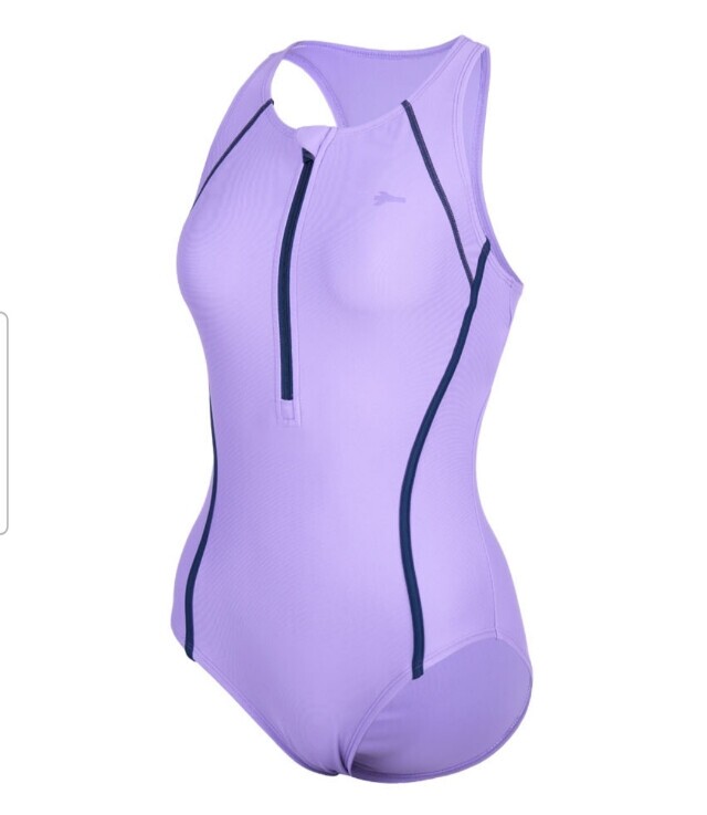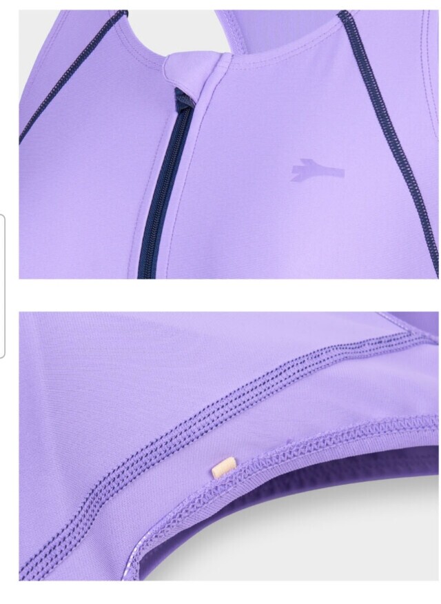 앞 지퍼 포인트가 있어 착용하기 편하며 부드러운 터치감과 탄탄한 착용감이 좋으며 Y백 라인의 여성 실내 수영복입니다 .