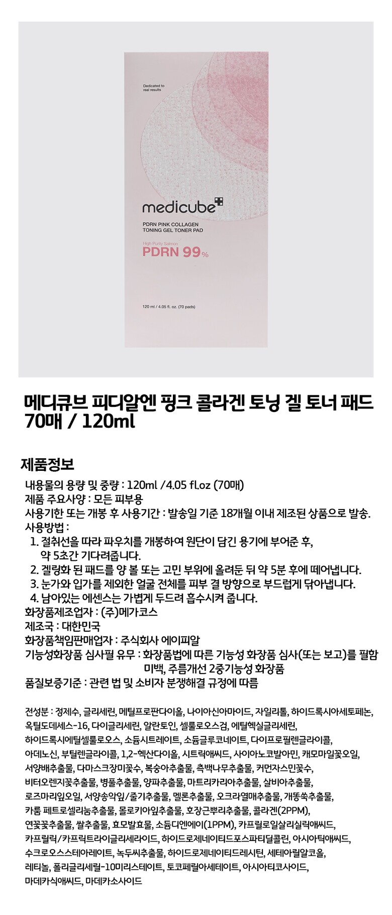 메디큐브 PDRN 핑크 콜라겐 토닝 겔 토너 패드 120ml