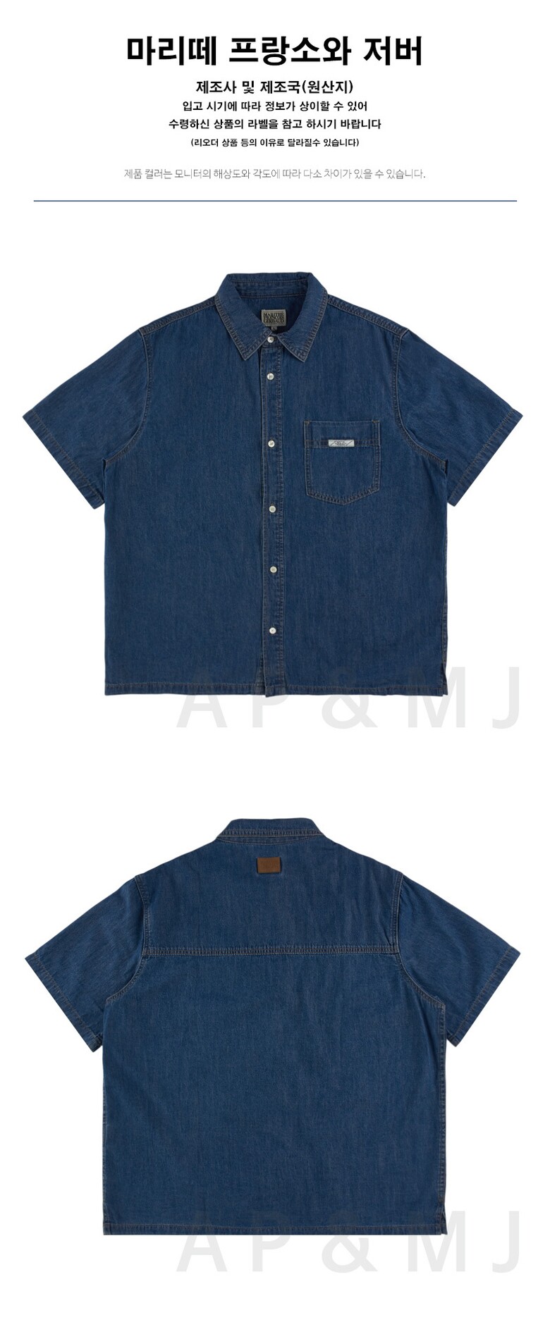 마리떼 남성 하프 데님 셔츠 MFG45USH204 BLU