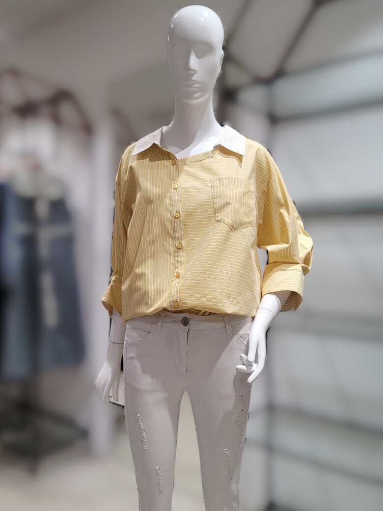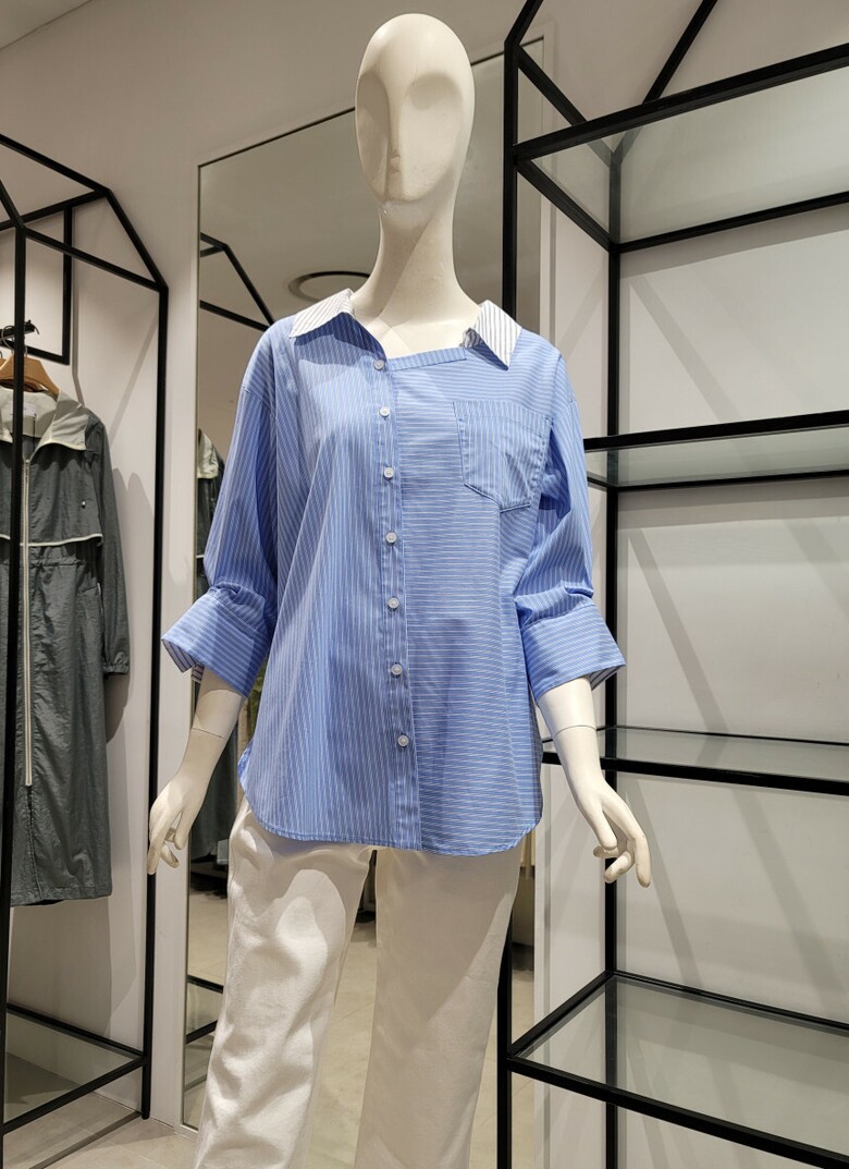 SI스트라이프 사선 소매디테일 블라우스SIBAE2471
