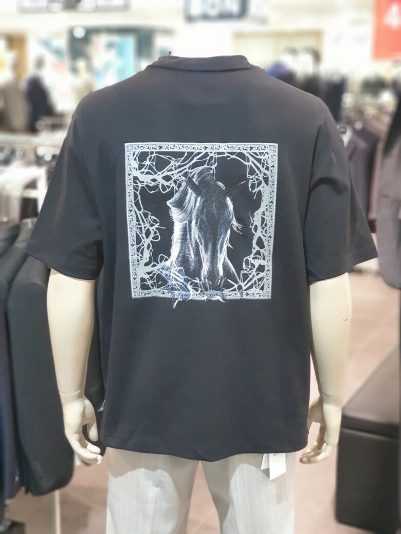 BON 23SS 블랙 면 100% 페가수스 카르마 아트웍 라운드 티셔츠 BN3MTS775BK