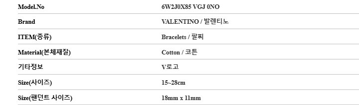[명품] 발렌티노 6W2J0X85 VGJ 0NO J0X85 VGJ 0NO 가라바니 V로고 코튼 팔찌