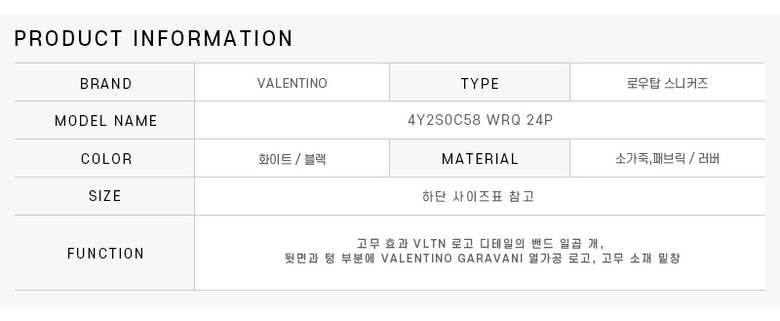 [명품] 발렌티노 4Y2S0C58 WRQ 24P S0C58 WRQ 24P VL7N 로우 스니커즈