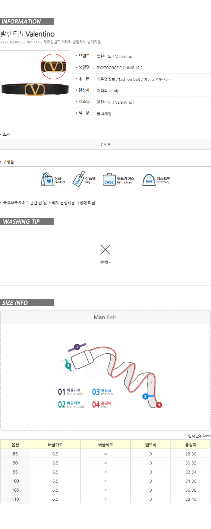 [명품] 발렌티노 브이 로고 금장 양면 벨트 3Y2T0Q90ECU NM8