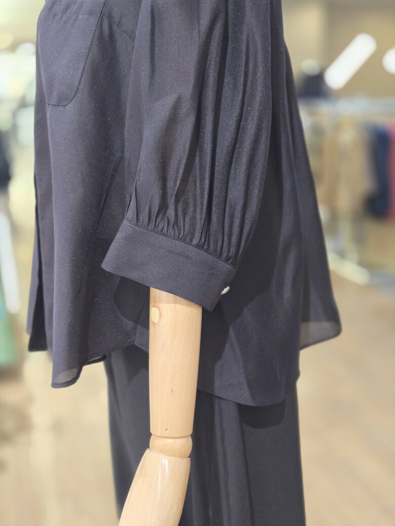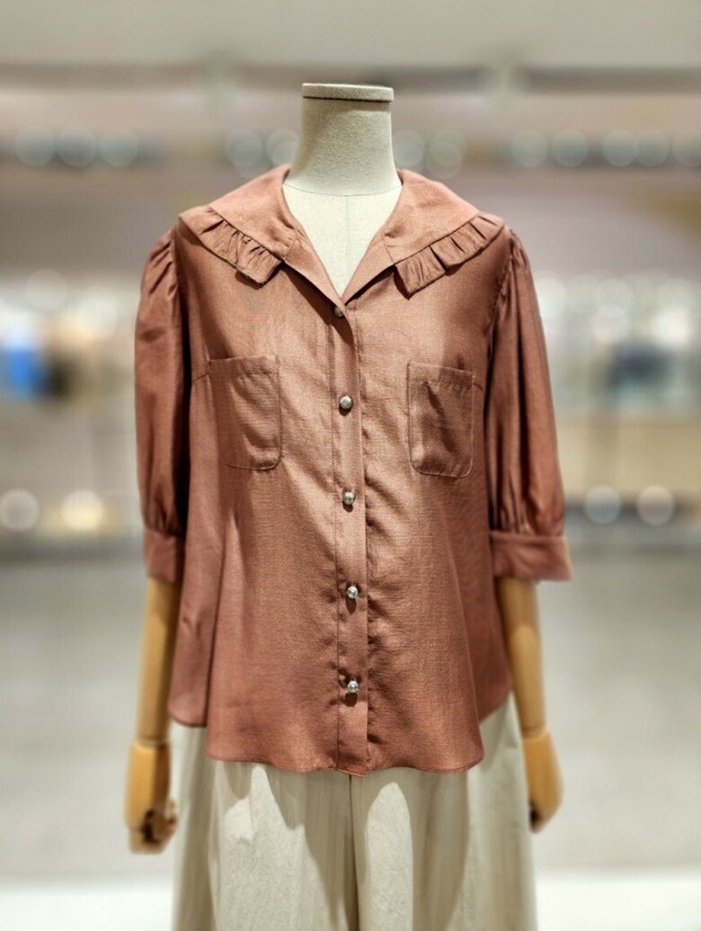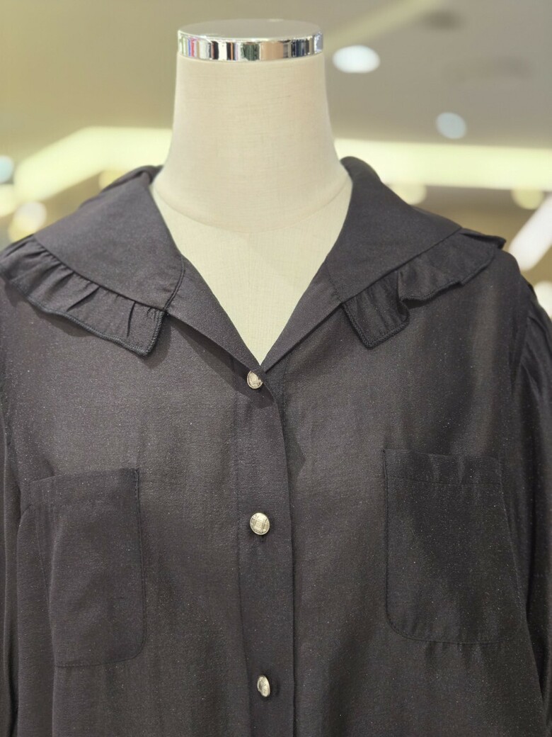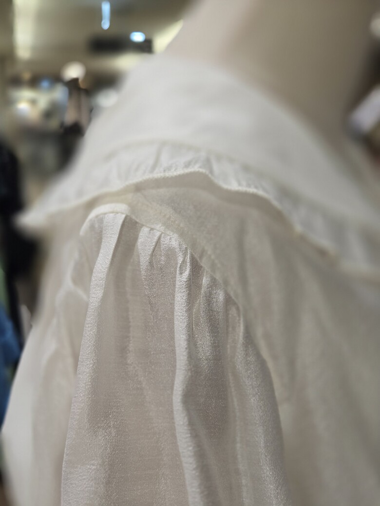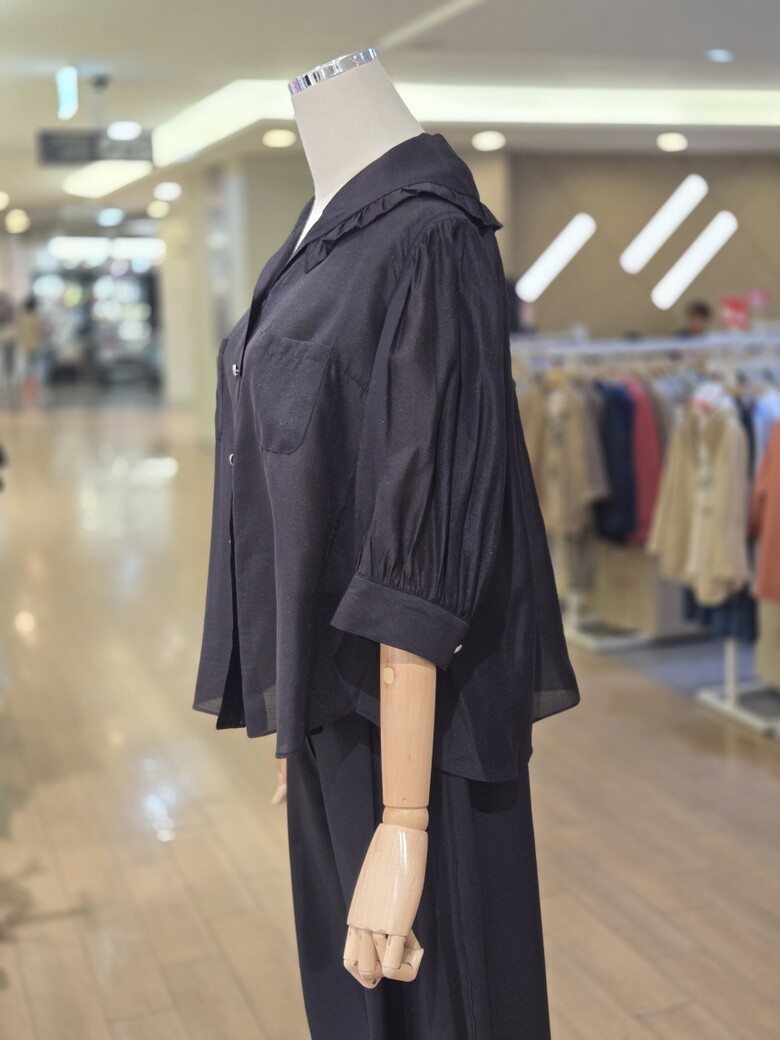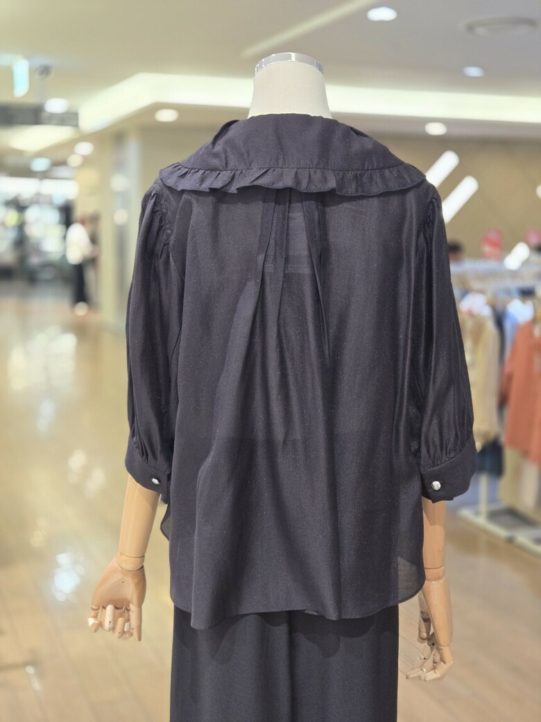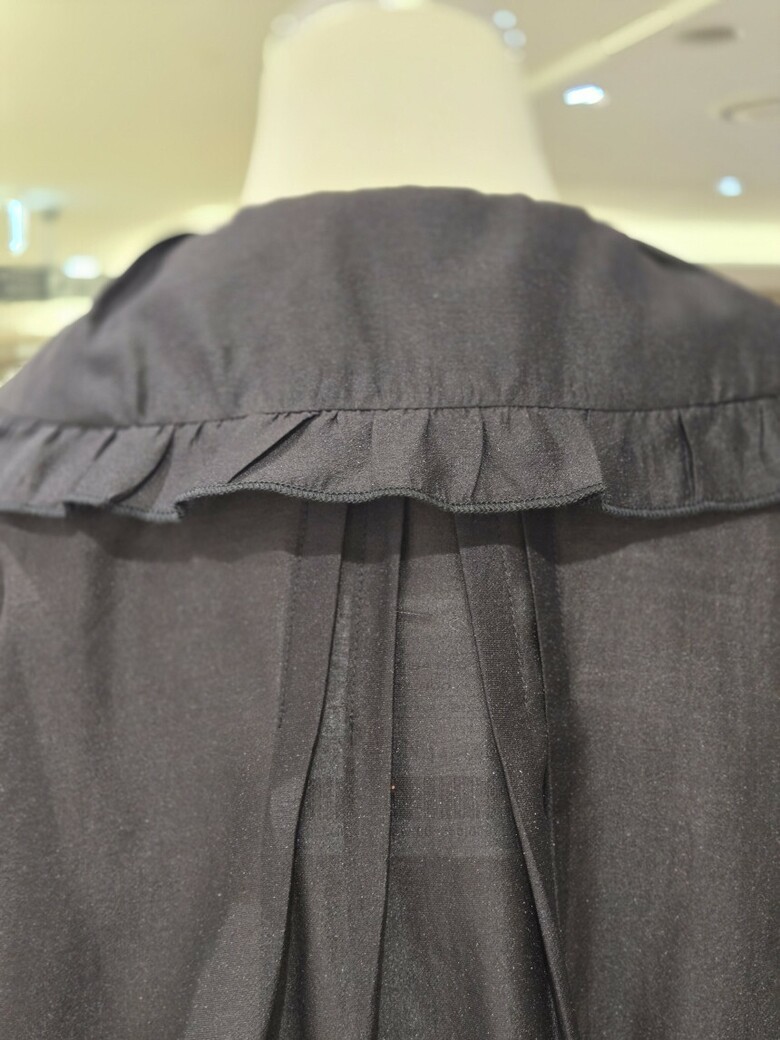 세일러넥 프릴이 여성스럽게 되어있는 뒤면 핀턱 셔링 포인트