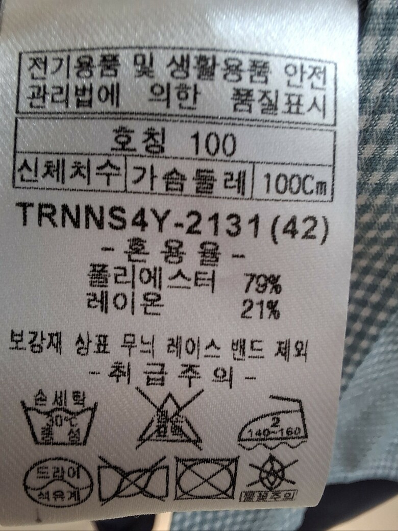 | 1. 제품 소재 (섬유의 조성 또는 혼용률을 백분율로 표시, 기능성인 경우 성적서 또는 허가서) | 폴리에스테르 79%, 레이온 21% |
