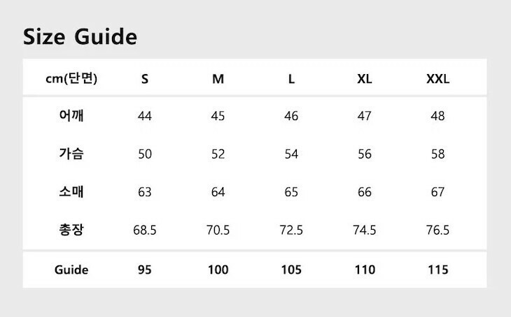 사이즈 : 95(S),100(M),105(L),110(XL),115(XXL)