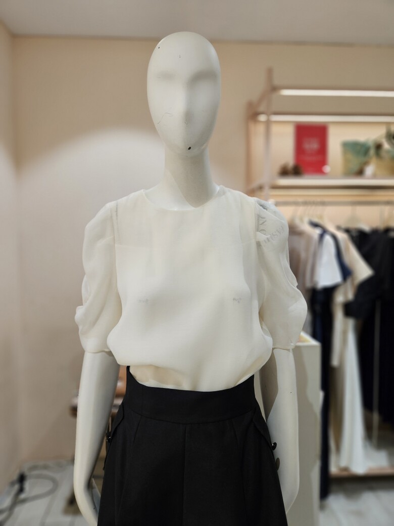 백 리본 퍼프 슬리브 블라우스 GR5A0BL811