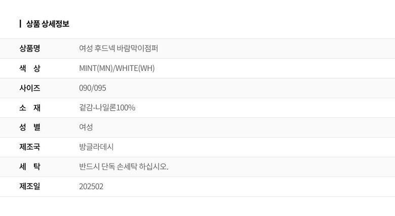 | 2. 색상 | 색상:MINT(MN)/WHITE(WH) |