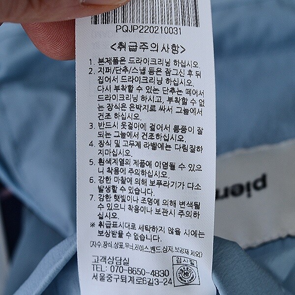 세탁방법 및 취급시 주의사항 : 본 상품 케어라벨 참조