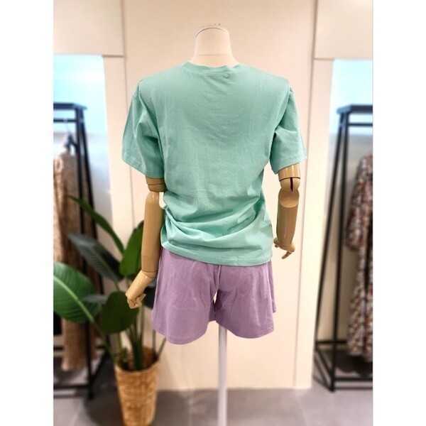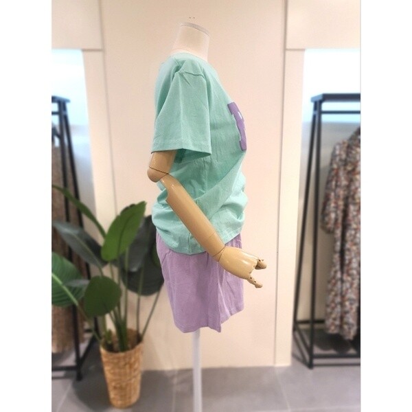 배색 발포 프린팅으로 포인트가 들어간 티셔츠로 캐주얼합니다.