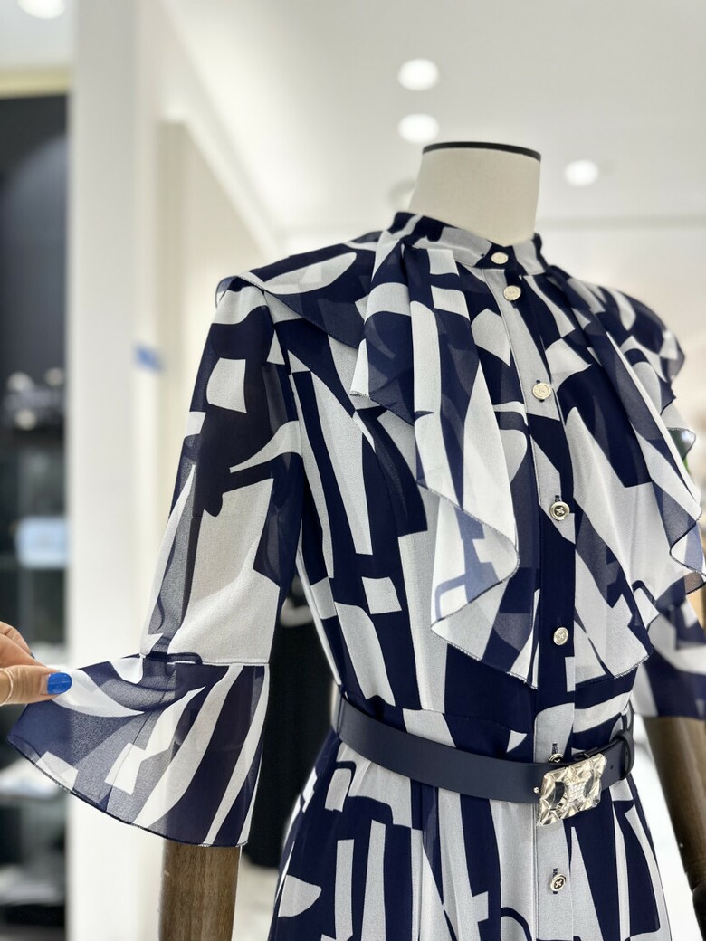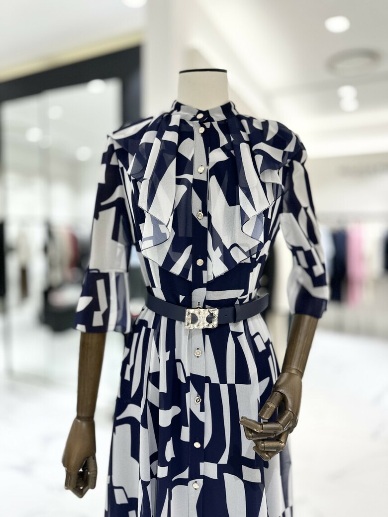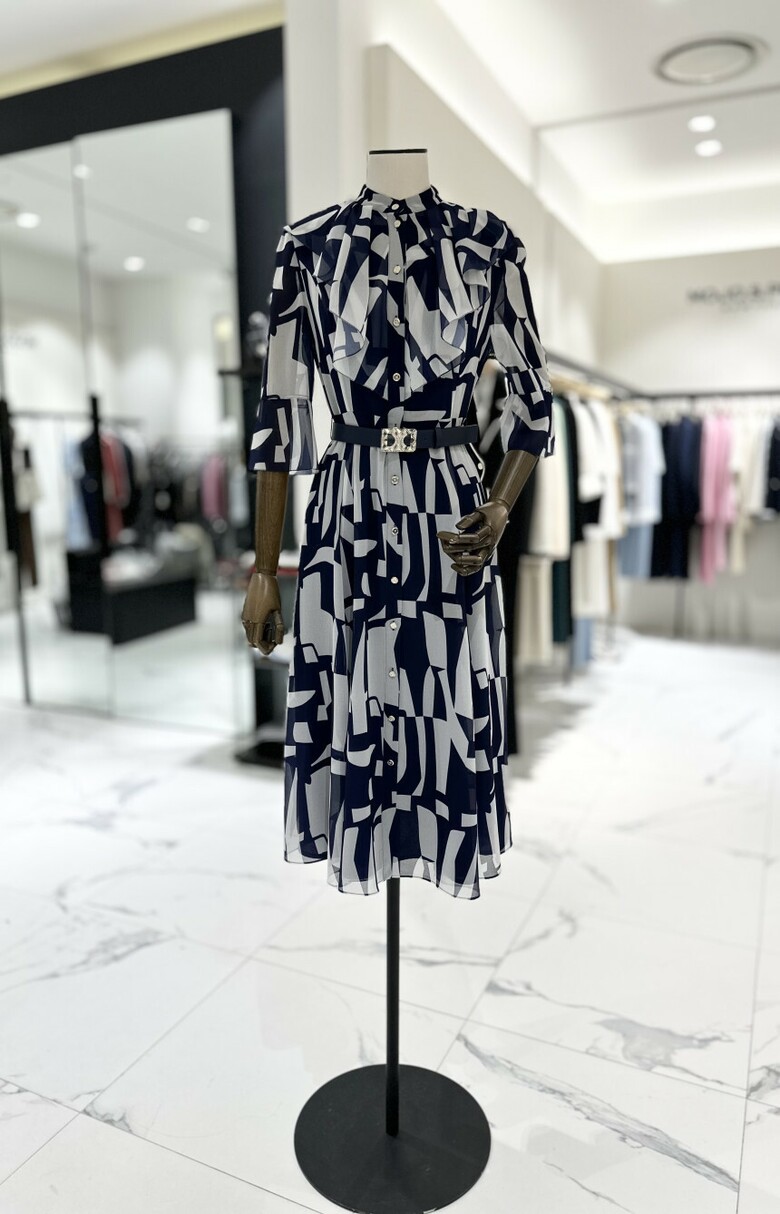 모조에스핀 패턴 프릴 쉬폰 원피스 S252MSE020