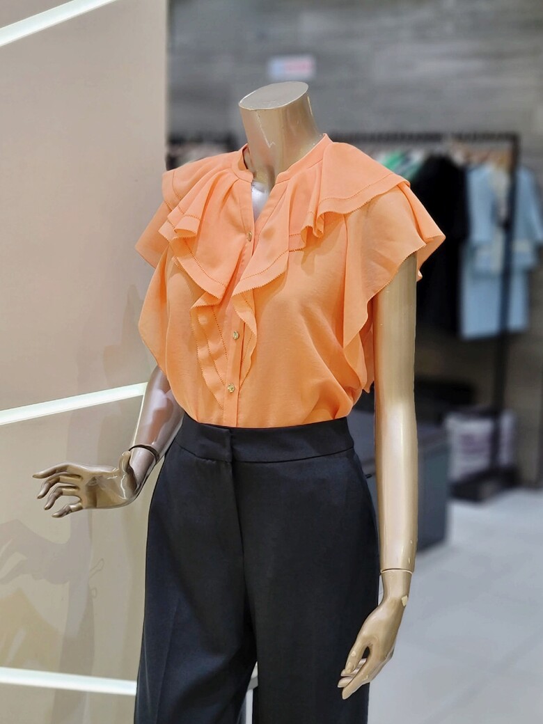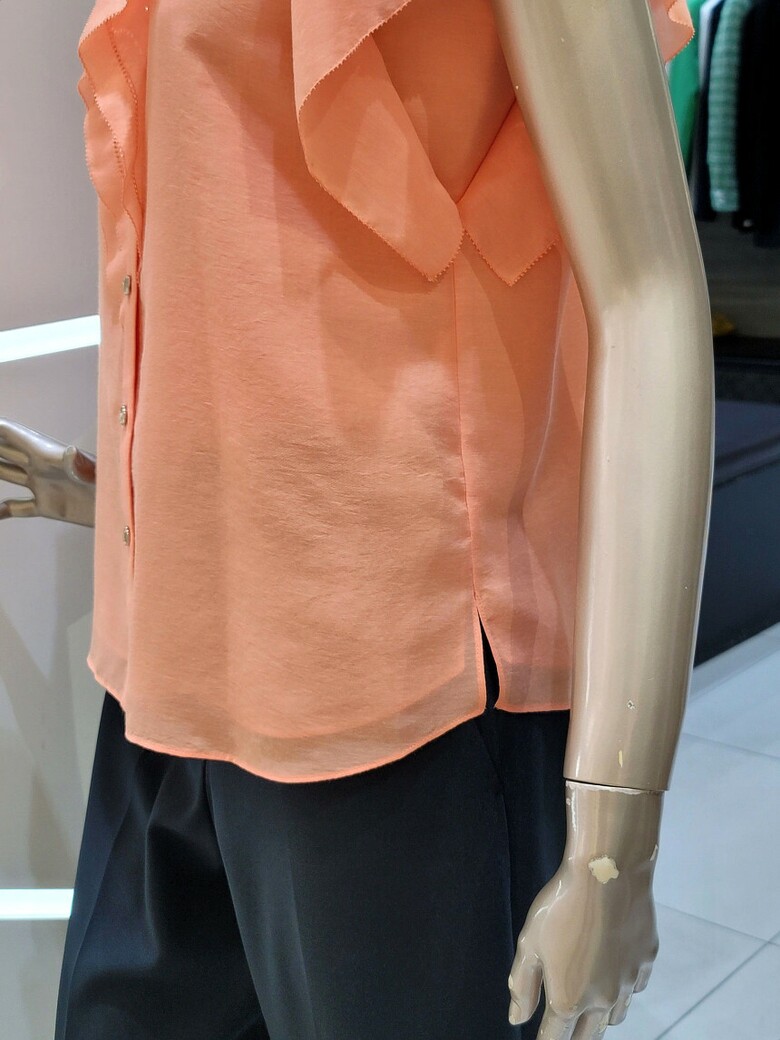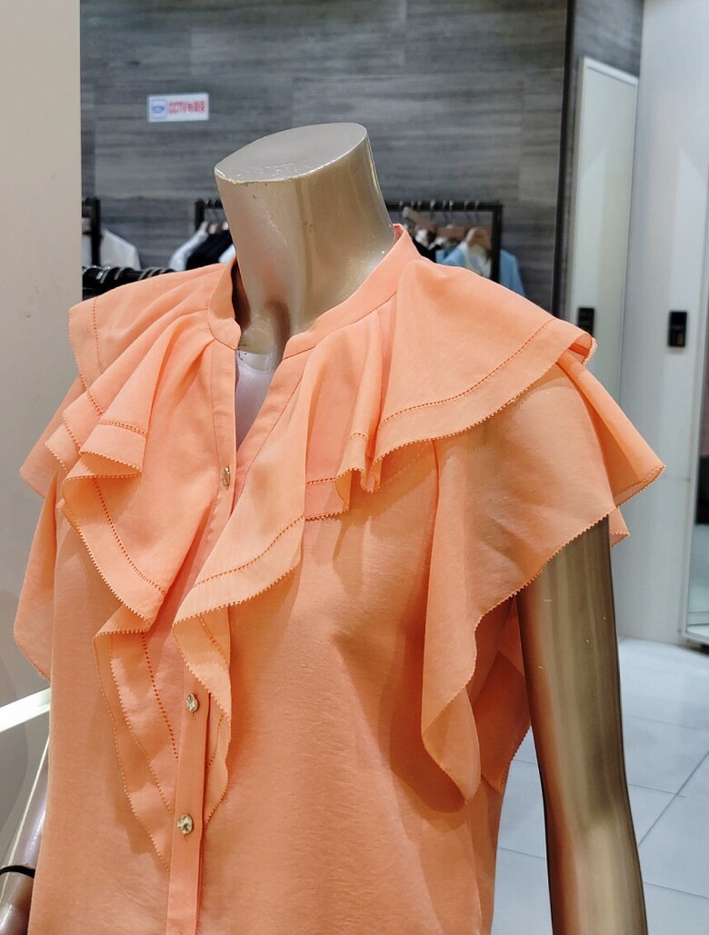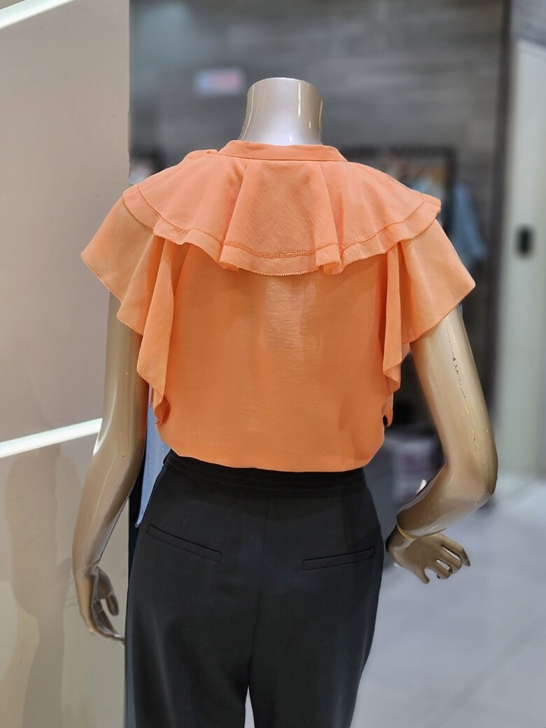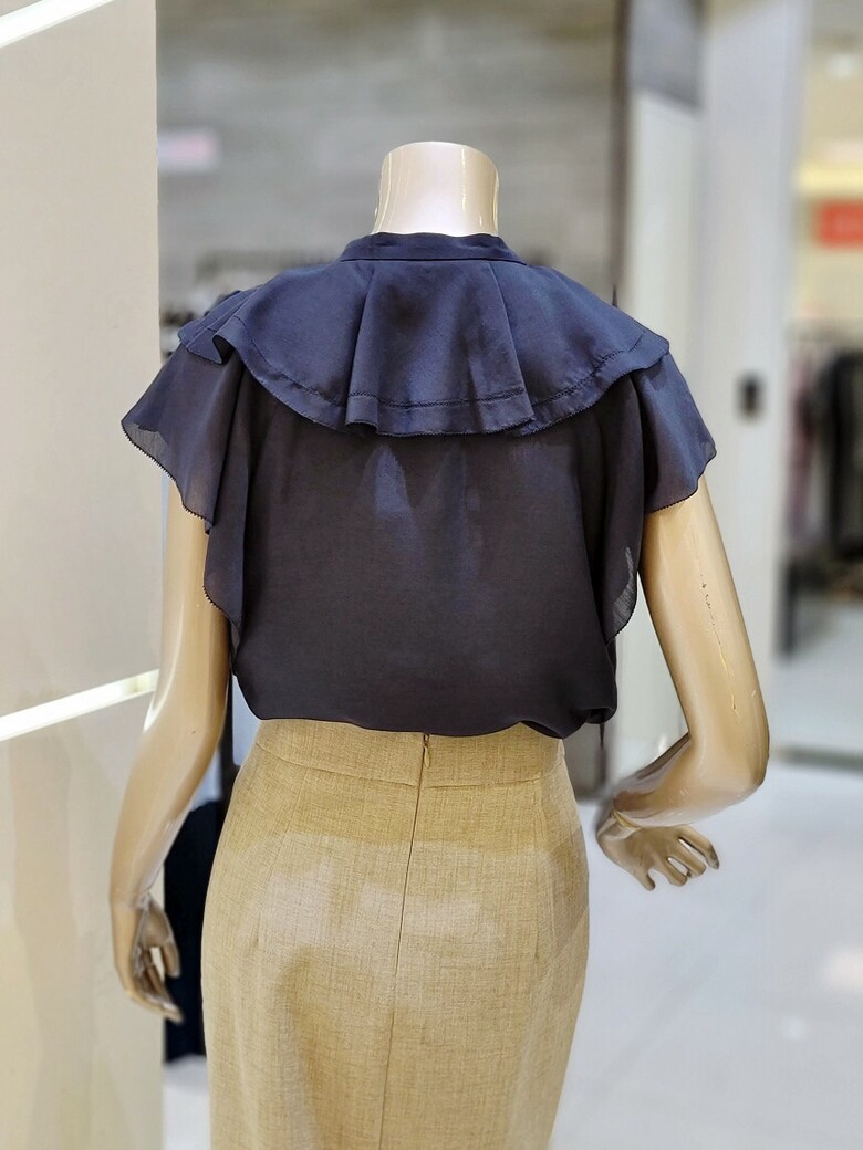 러플 슬리브로 어깨라인을 커버할 수 있는 아이템입니다.
