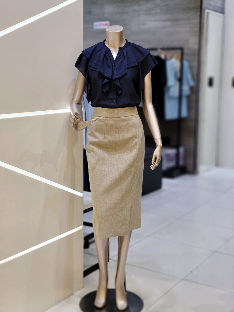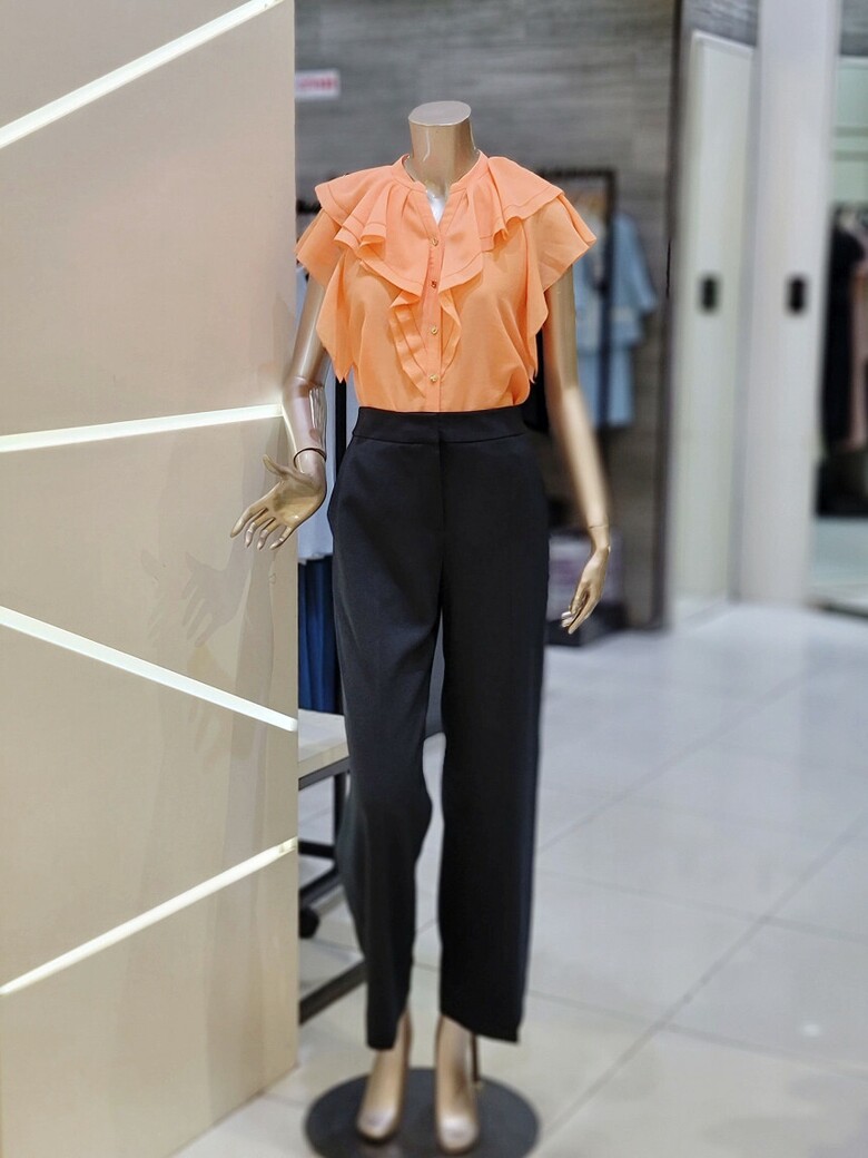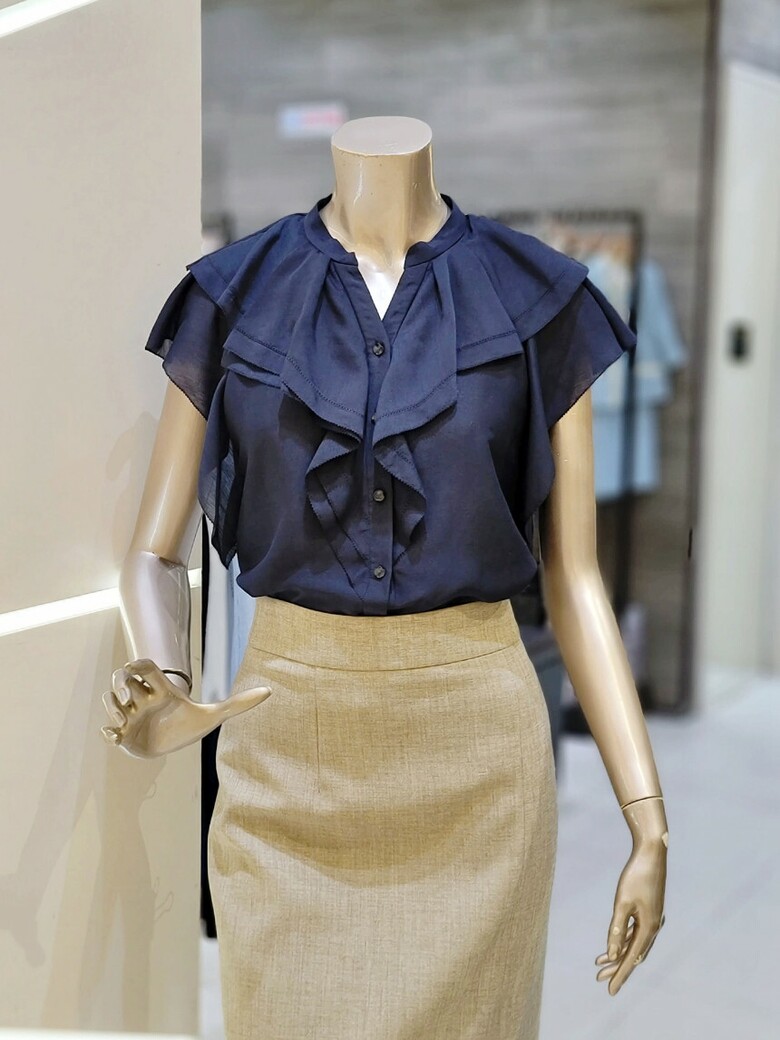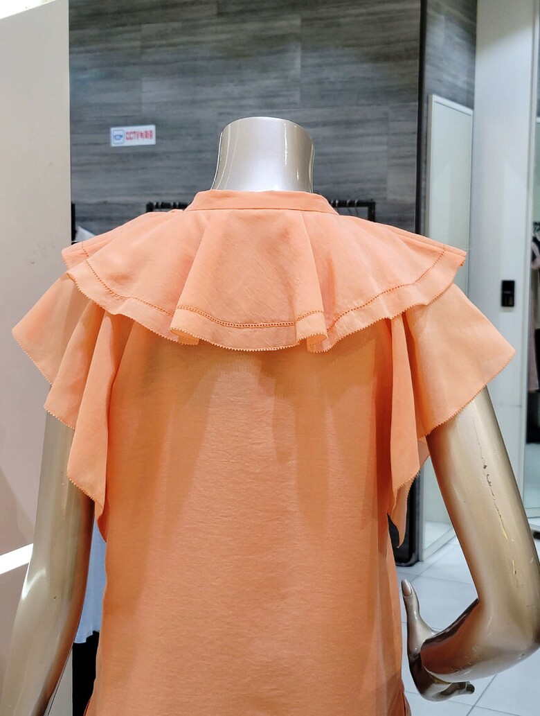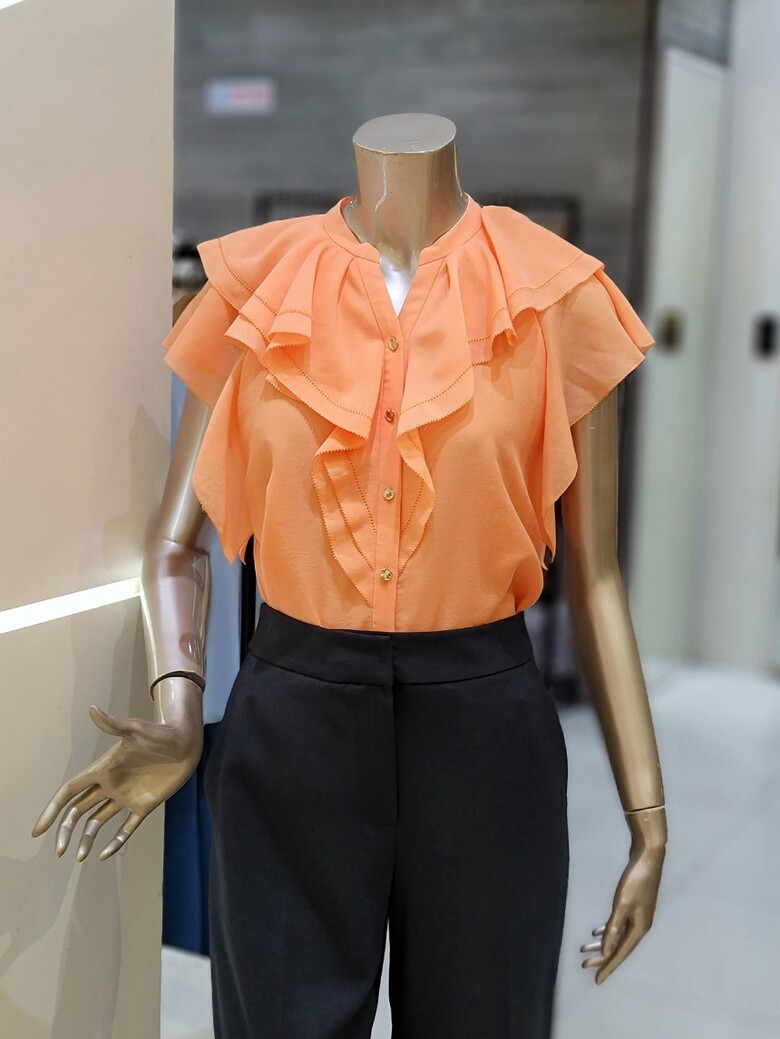 러플 슬리브로 어깨라인을 커버할 수 있는 아이템입니다.