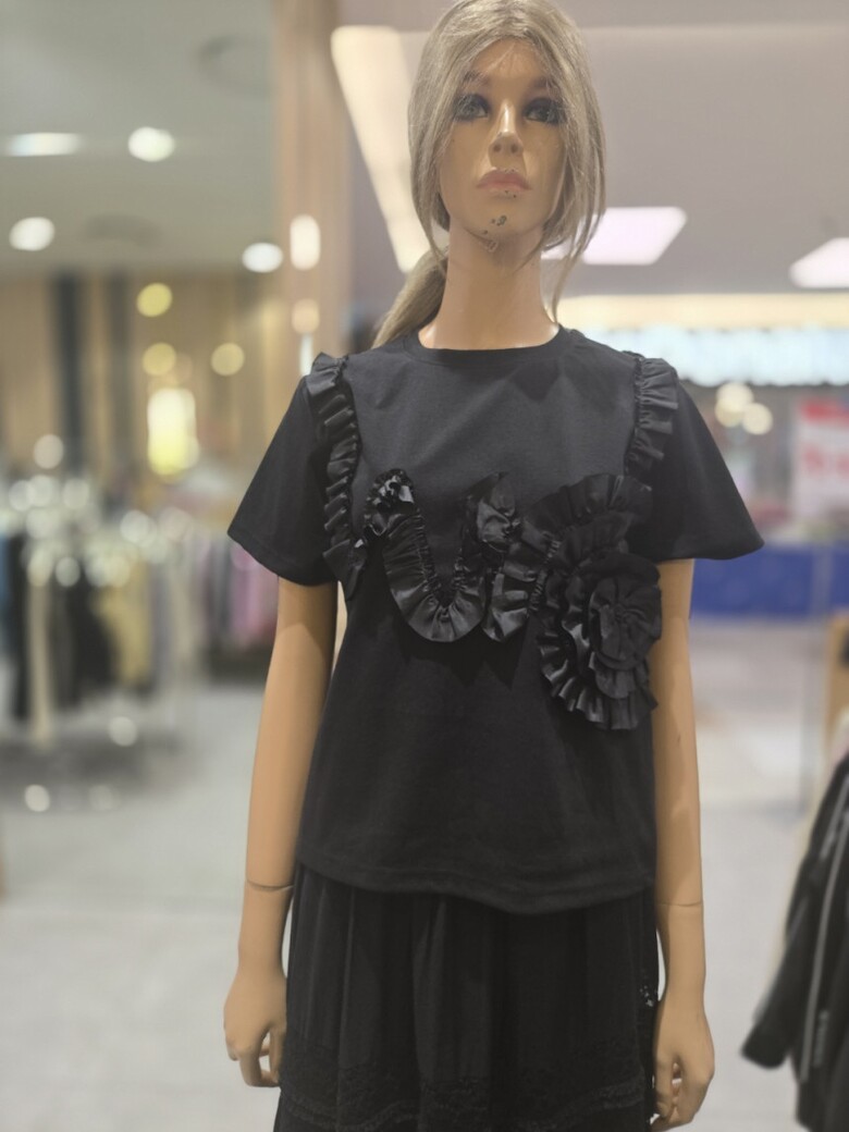 프릴 패치 반팔 티셔츠 ER2BX-005