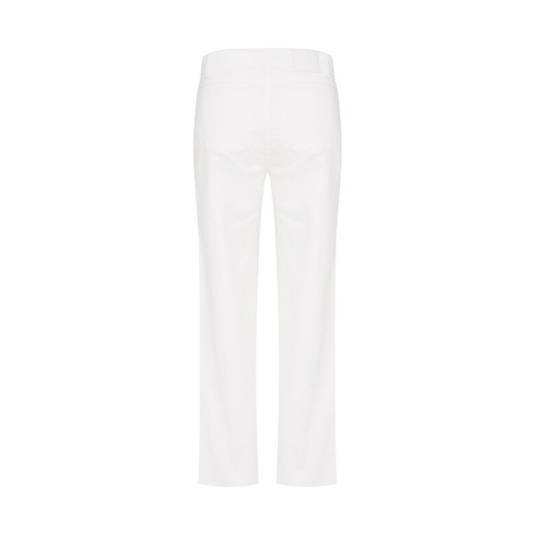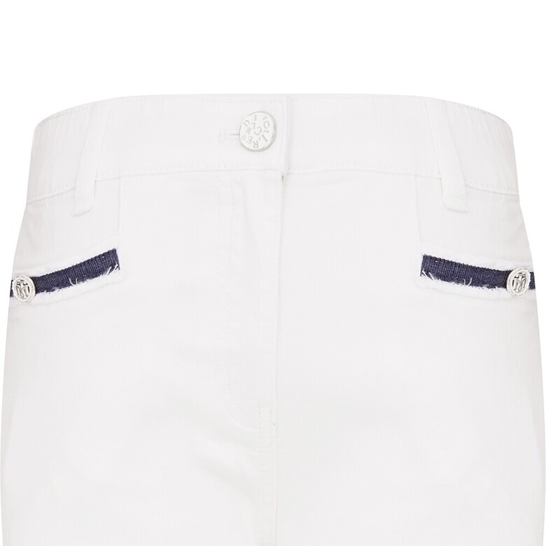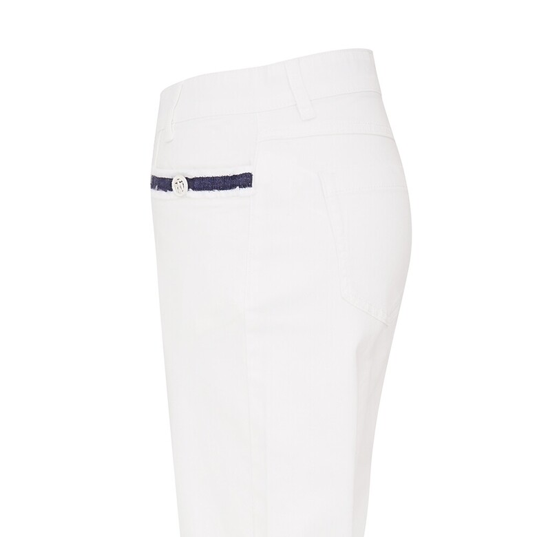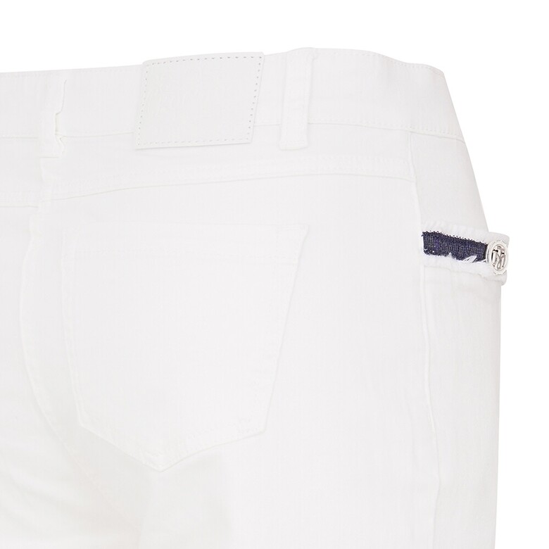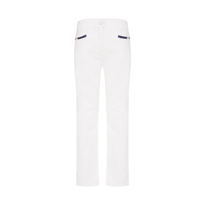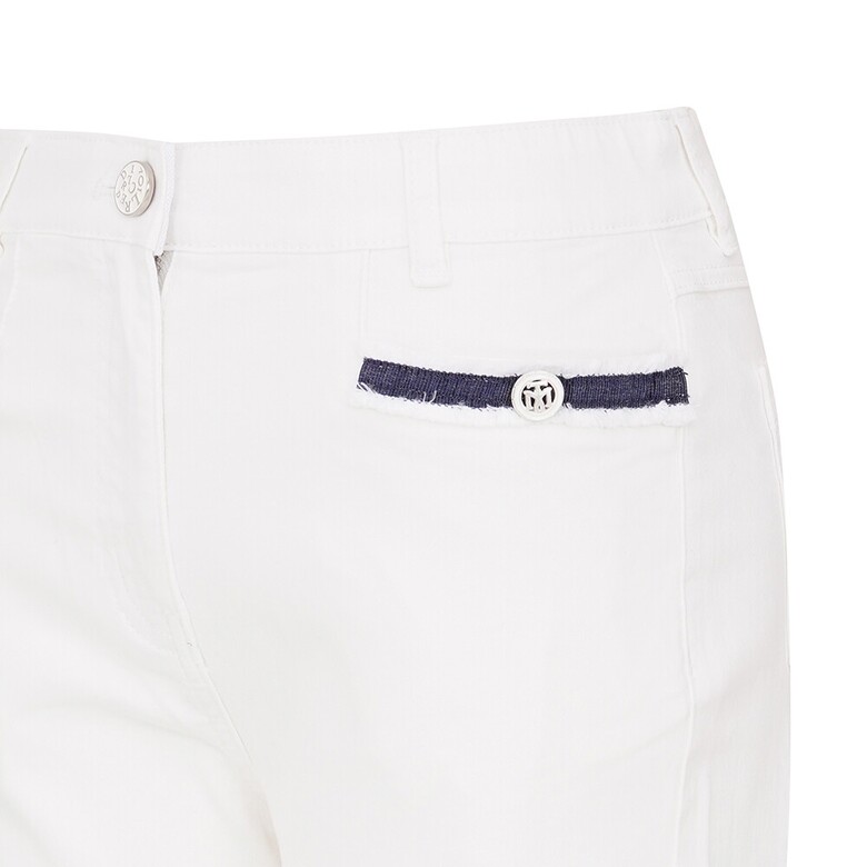와이드핏) 와이드 핏의 화이트 데님 입니다. 주머니에 여성스러운 장식 테이프를 덧방하여 포인트를 주었습니다.