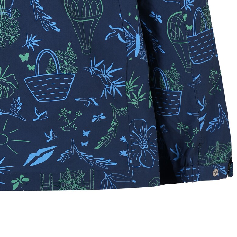 모티브를 라인으로 따서 프린트에 접목한 감각적인 여름 점퍼아이템. 벤틸 기능을 접목시켜 통풍이 용이하며 허리에 스트로우 기능을넣어 다양한 실루엣 연출가능.