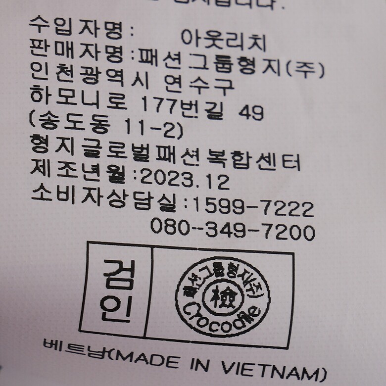 | 6. 세탁방법 및 취급시 주의사항 | 상품상세참조 |