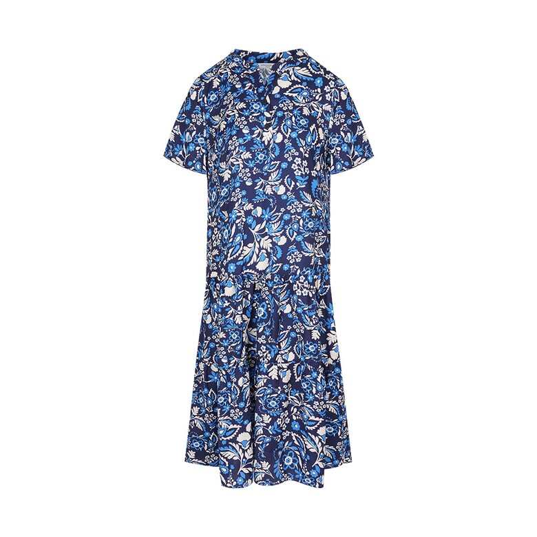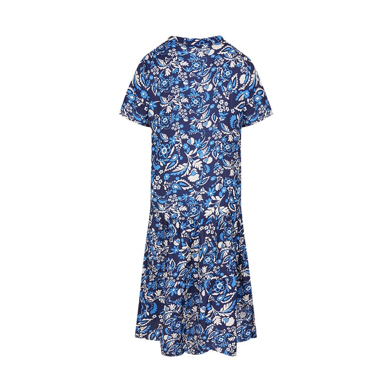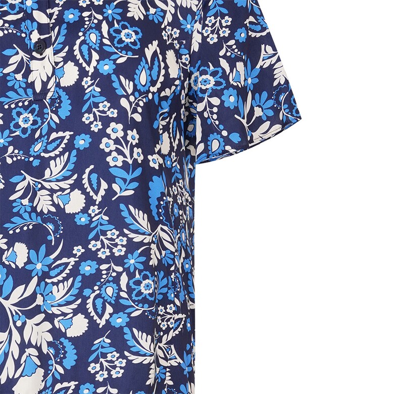 화사한 변형 플라워 프린트로 여름에 단독착장하기 좋으며 훌이 있어 체형커버에 용이한 롱기장 원피스 입니다