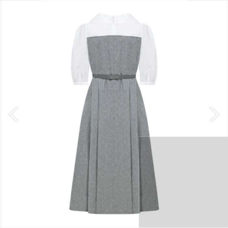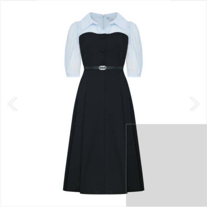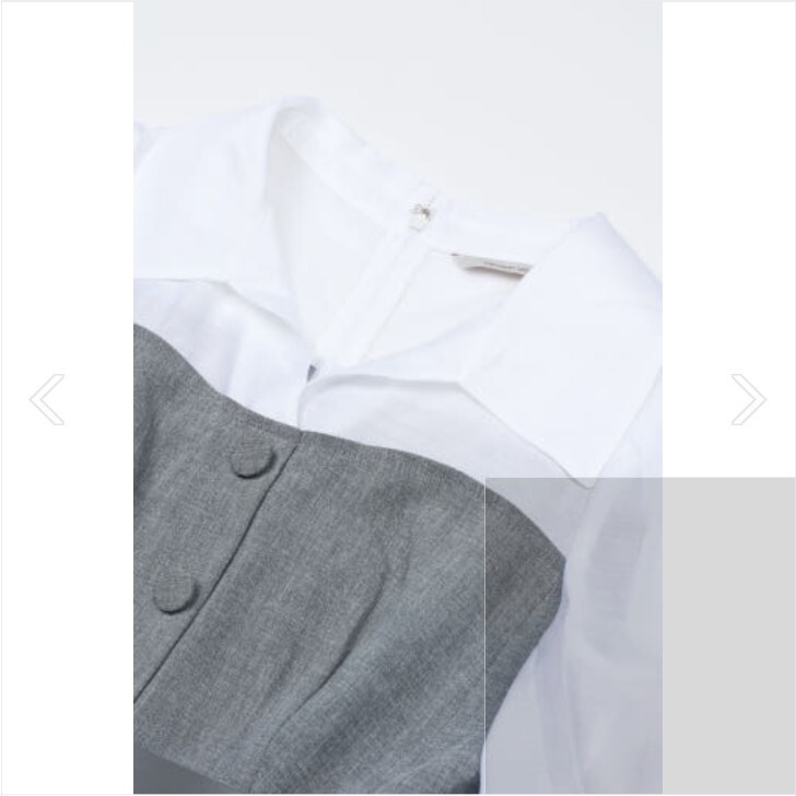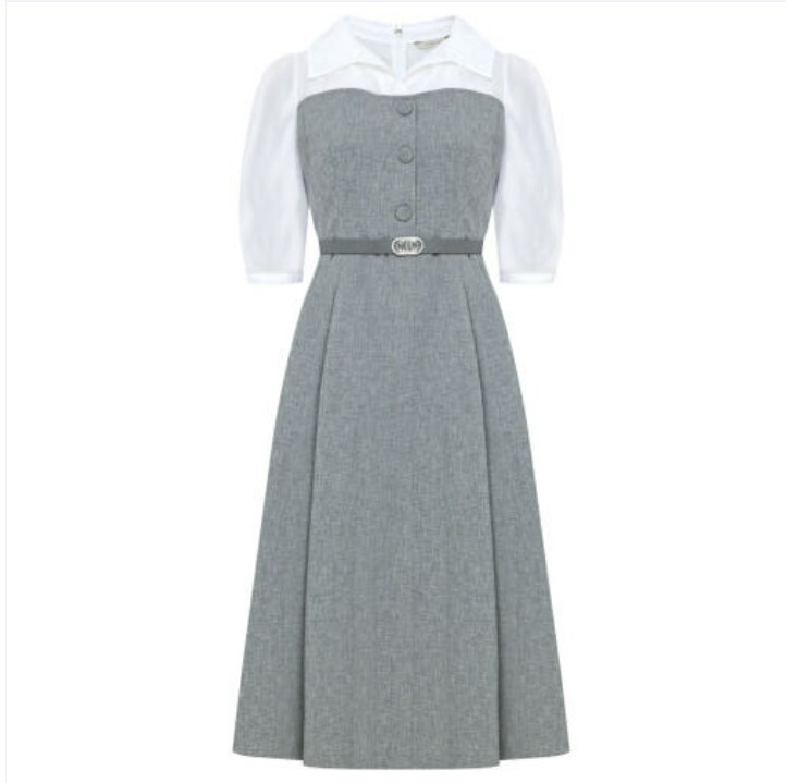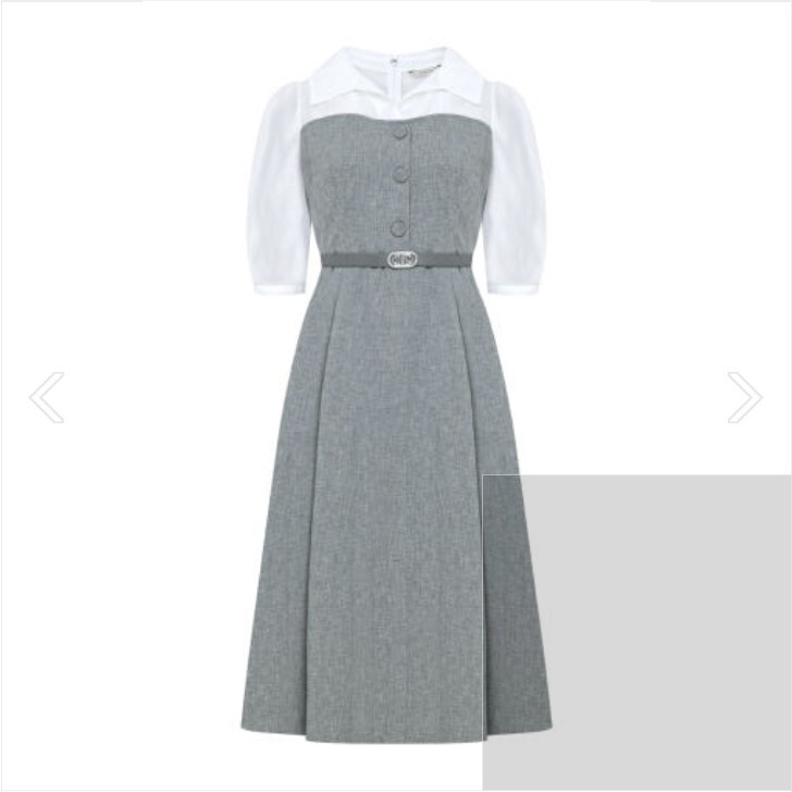 셔츠와 뷔스티에 원피스를 레이어드하여 착용한 듯한 디자인입니다.