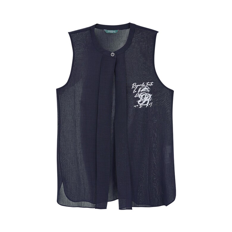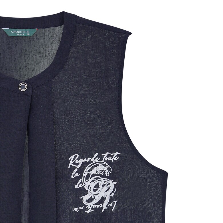 롱기장의 프린트가 포인트인 베스트 입니다. 심플한 디자인에 여성스러운 포인트 프린트가 여름 코디로 다양하게 활용 할수 있는 아이템입니다.