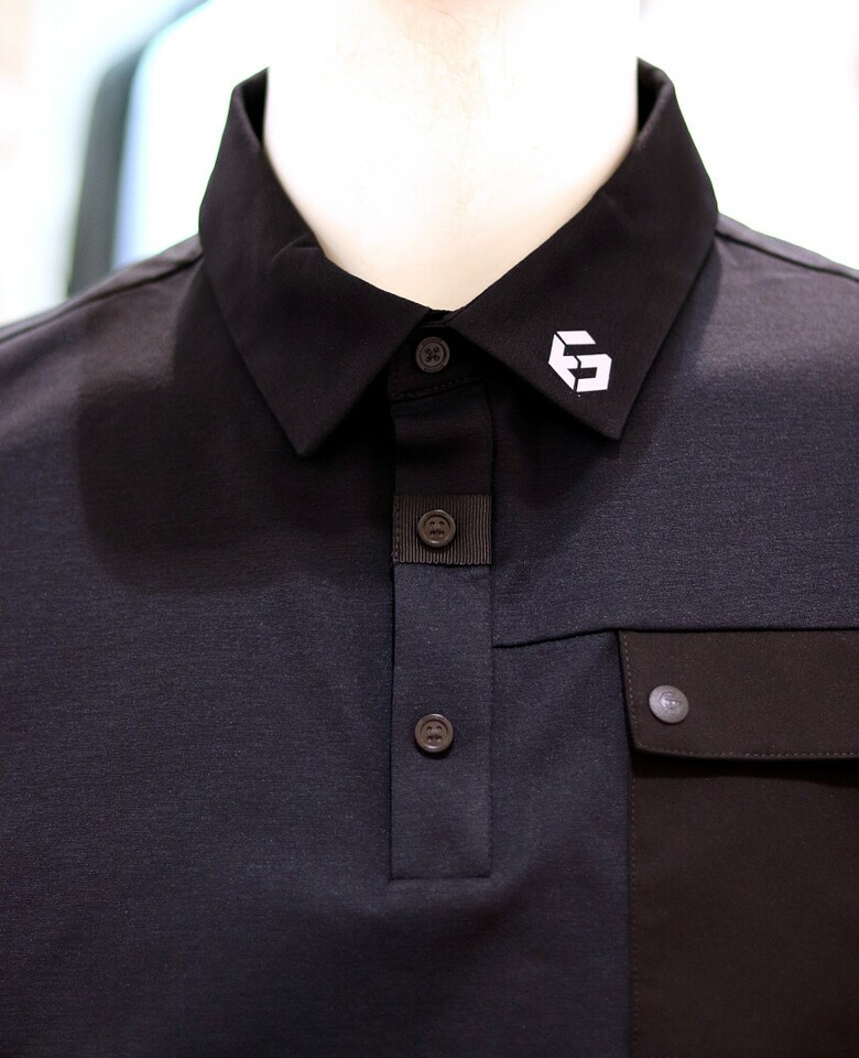 가슴에 우븐 배색주머니와 카라에 로고 프린트로