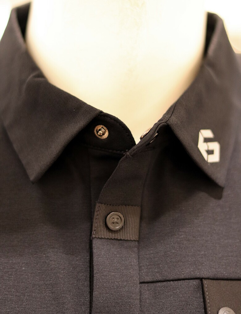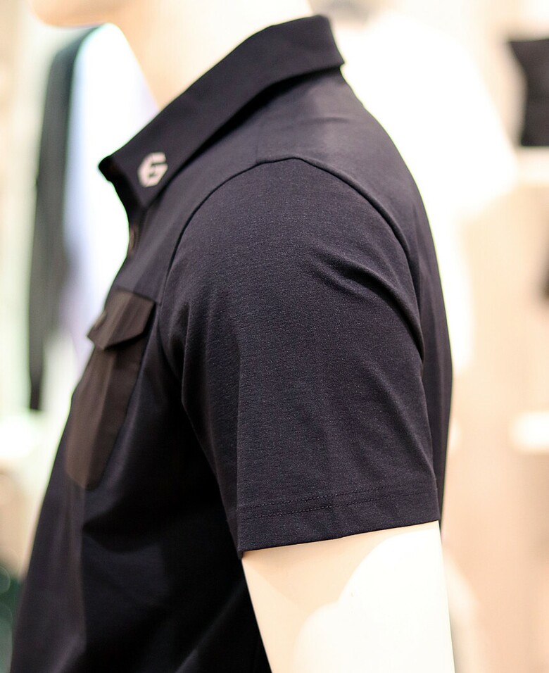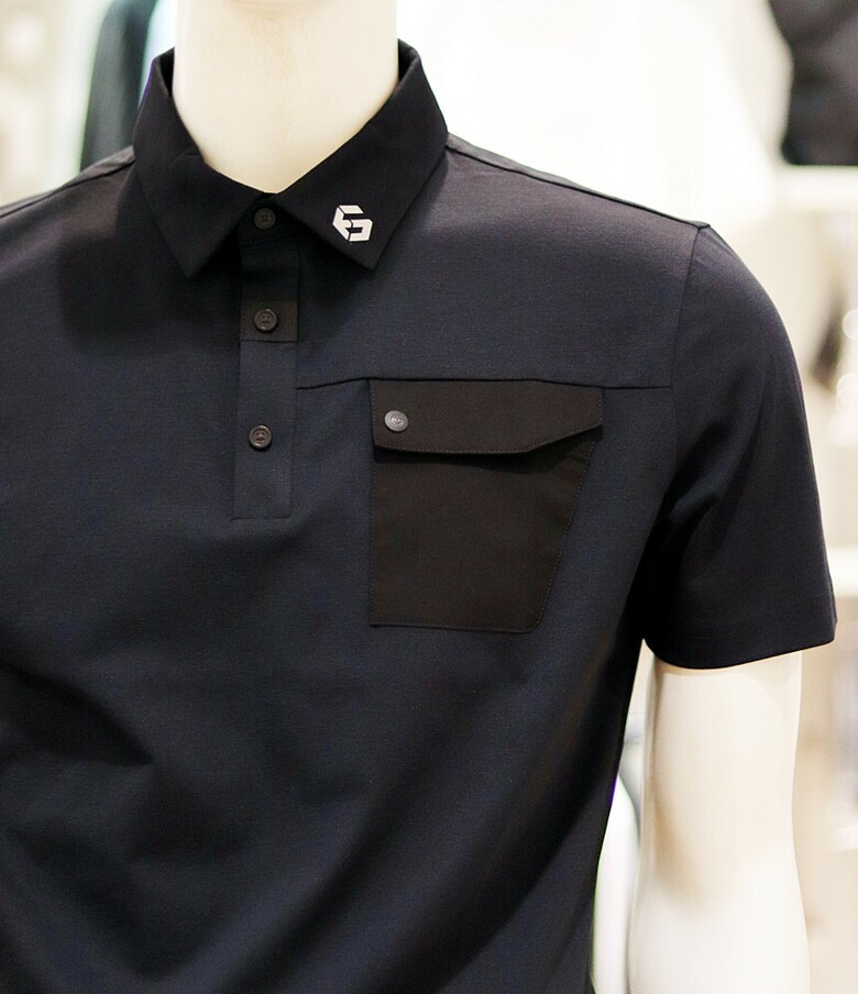 가슴에 우븐 배색주머니와 카라에 로고 프린트로