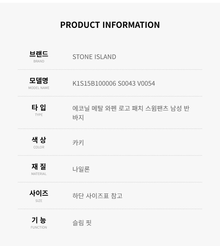 스톤아일랜드 바지 K1S15B100006 S0043 V0054 에코닐 메탈 와펜 로고 패치 남성반바지 당일발송