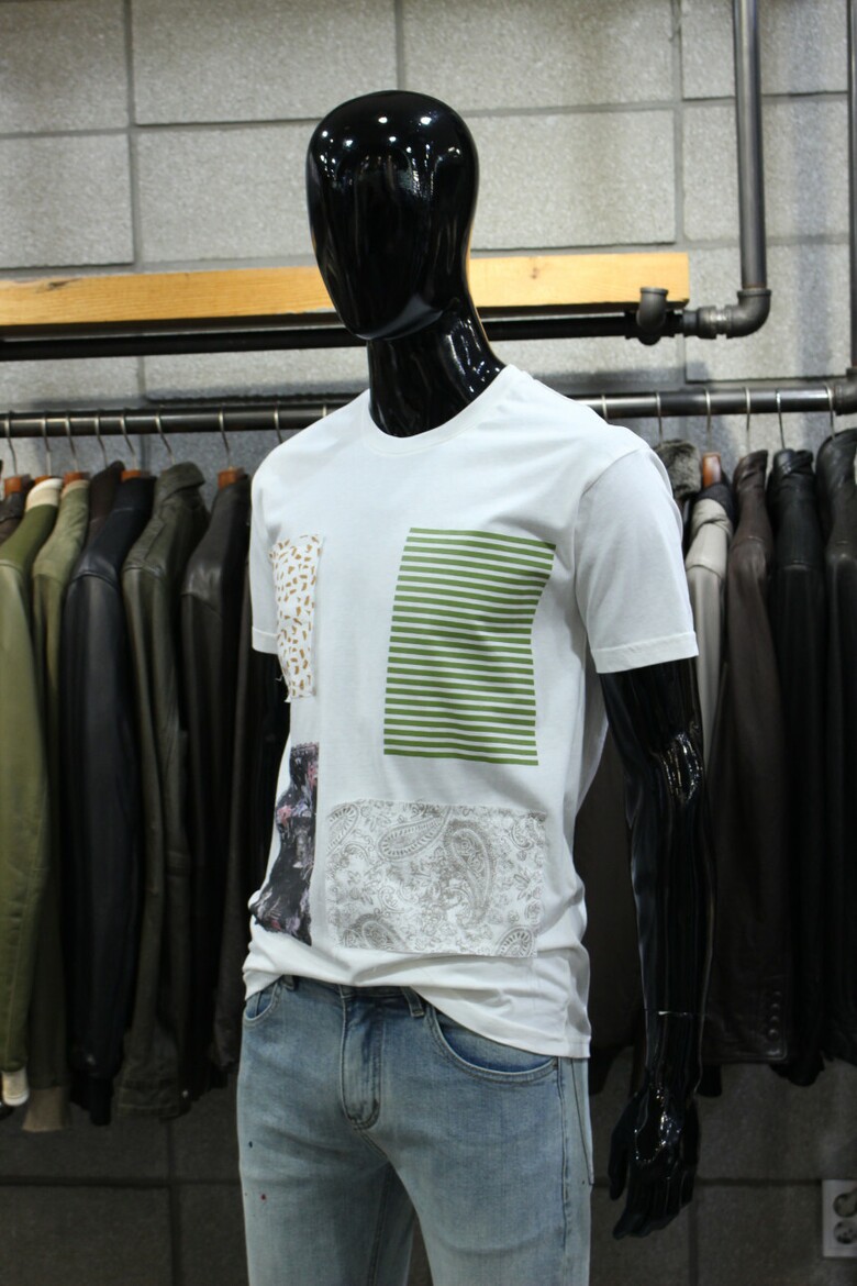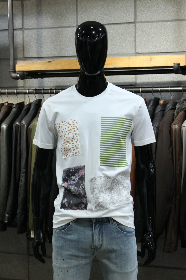 이태리직수입 패치워크빈티지 가먼트다잉화이트 코튼반팔티 f-qtee03wh