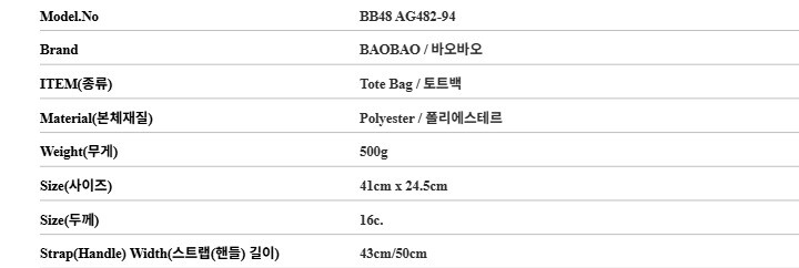 | 4. 크기 | SIZE - 41cmx24.5cmx16c. |