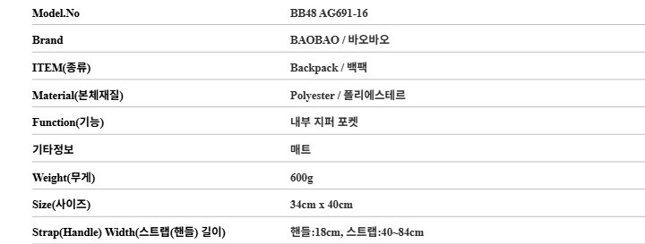 바오바오 가방 BB48 AG691-16 플랫 팩 매트 여성백팩 당일발송