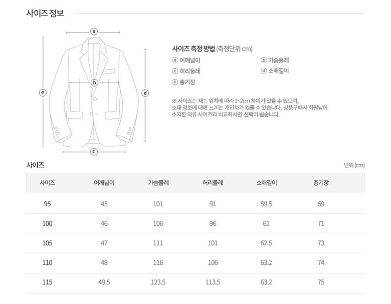 | 3. 치수 | 95,100,105,110 |