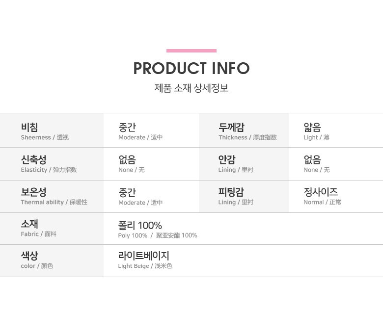 | 1. 제품 소재 (섬유의 조성 또는 혼용률을 백분율로 표시, 기능성인 경우 성적서 또는 허가서) | 별도표시 |