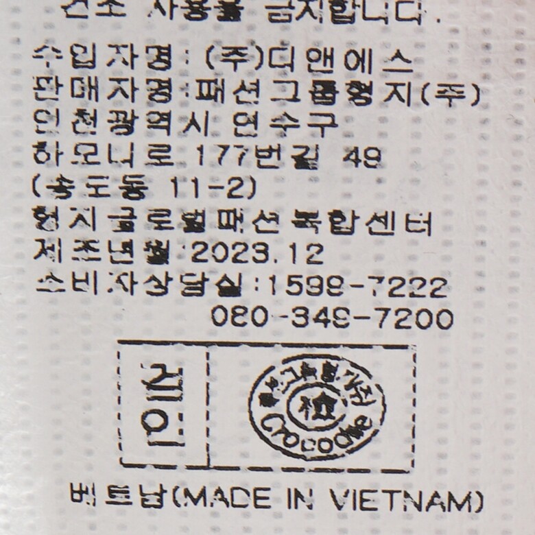 • 아울렛 상품의 특성 상 “택이 훼손”된 경우가 있으나 이는 불량이 아니며 무료 반품 대상 상품이 아닙니다.