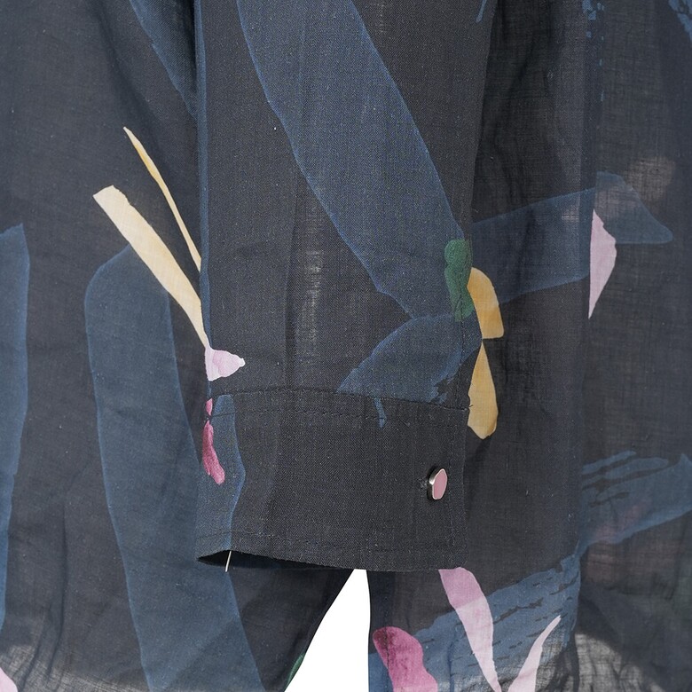 붓터치 프린트가 포인트인 풀오픈형 셔츠입니다. 시원하고 몸에 달라 붙지 않는 소재를 사용하였습니다.