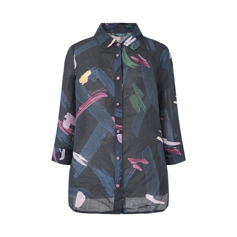 크로커다일레이디 붓터치프린트 린넨 블라우스 CLDMBL115