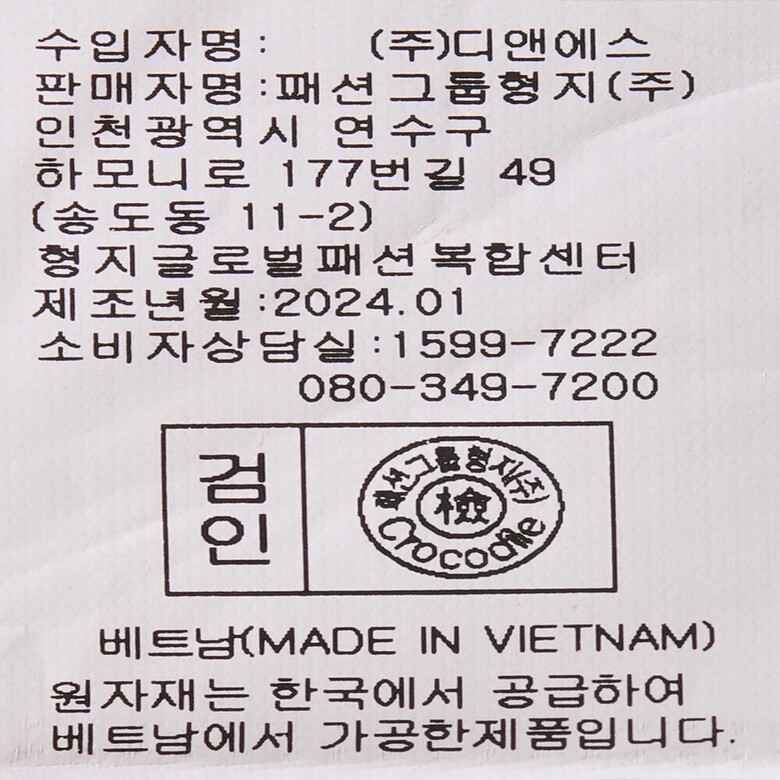 | 1. 제품 소재 (섬유의 조성 또는 혼용률을 백분율로 표시, 기능성인 경우 성적서 또는 허가서) | 상품상세참조 |