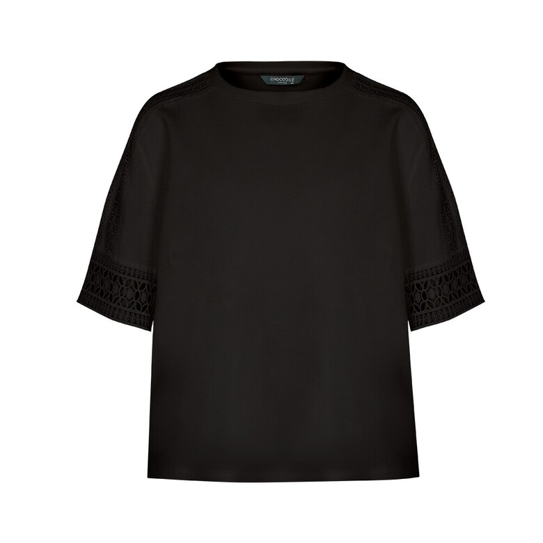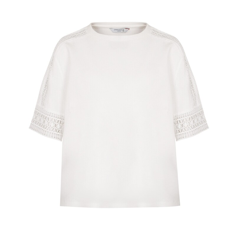 크로커다일레이디 소매 어깨라인 레이스 포인트 실루엣 티셔츠 CLDMTS112