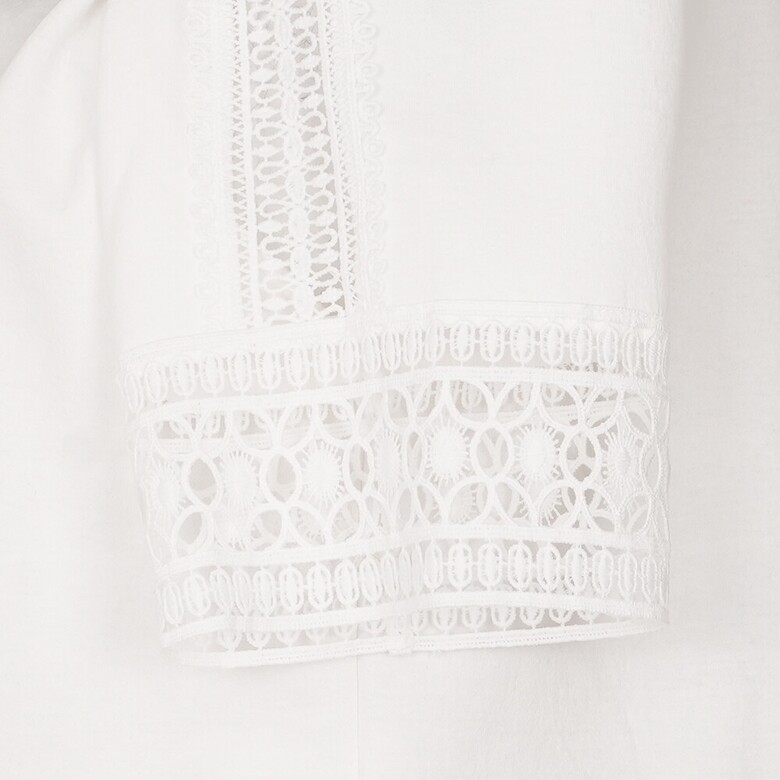 소매와 어꺠라인이 레이스가 한층 더 여성스럽게 연출하기 좋은 실루엣 변형 아이템입니다