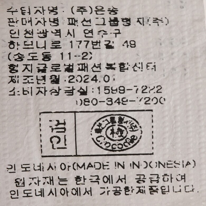 | 1. 제품 소재 (섬유의 조성 또는 혼용률을 백분율로 표시, 기능성인 경우 성적서 또는 허가서) | 상품상세참조 |