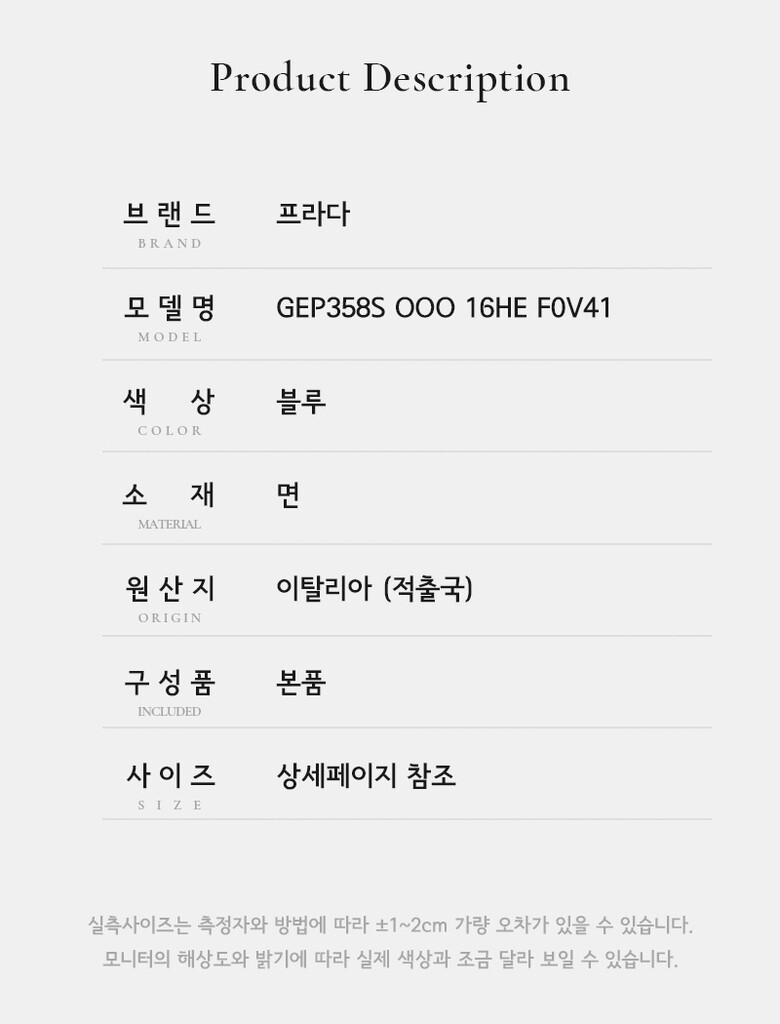 | 1. 제품 소재 (섬유의 조성 또는 혼용률을 백분율로 표시, 기능성인 경우 성적서 또는 허가서) | 상세페이지 참조 |