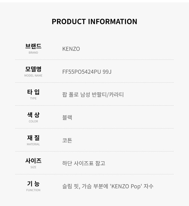 | 1. 제품 소재 (섬유의 조성 또는 혼용률을 백분율로 표시, 기능성인 경우 성적서 또는 허가서) | 상세페이지 참조 |