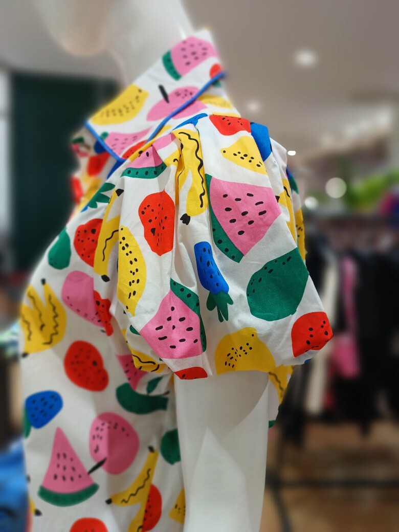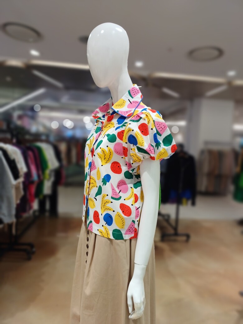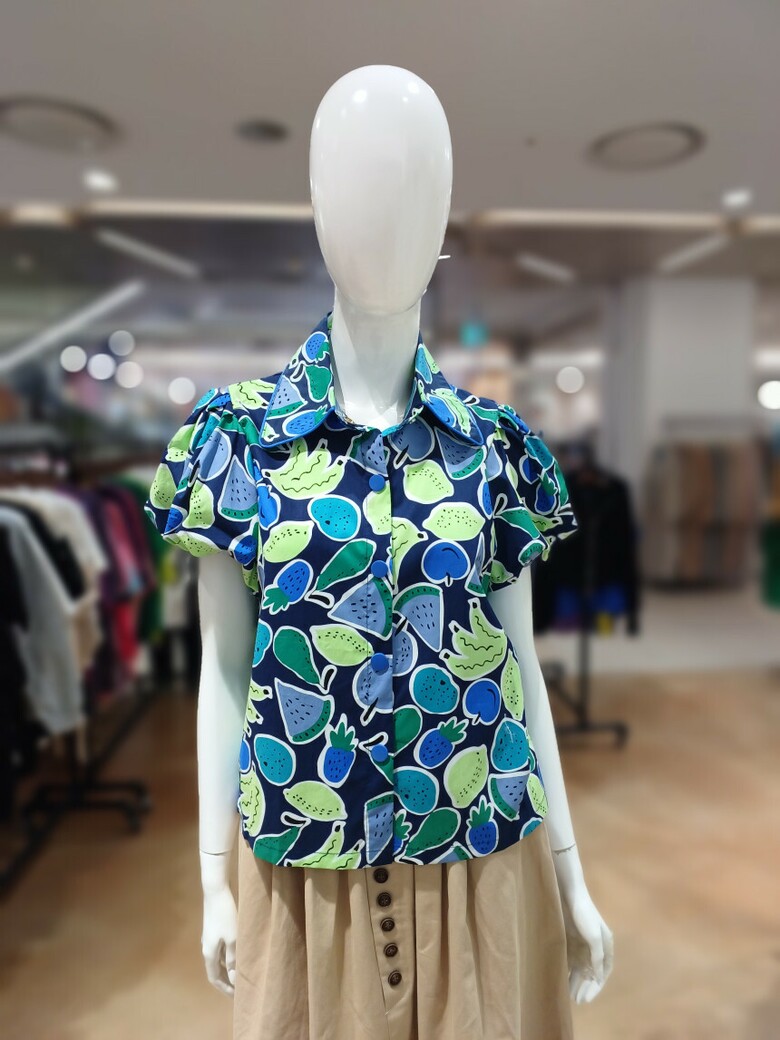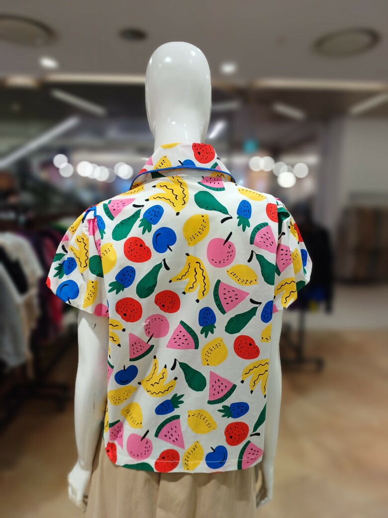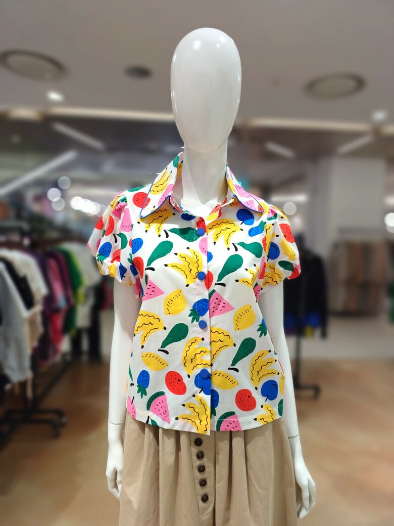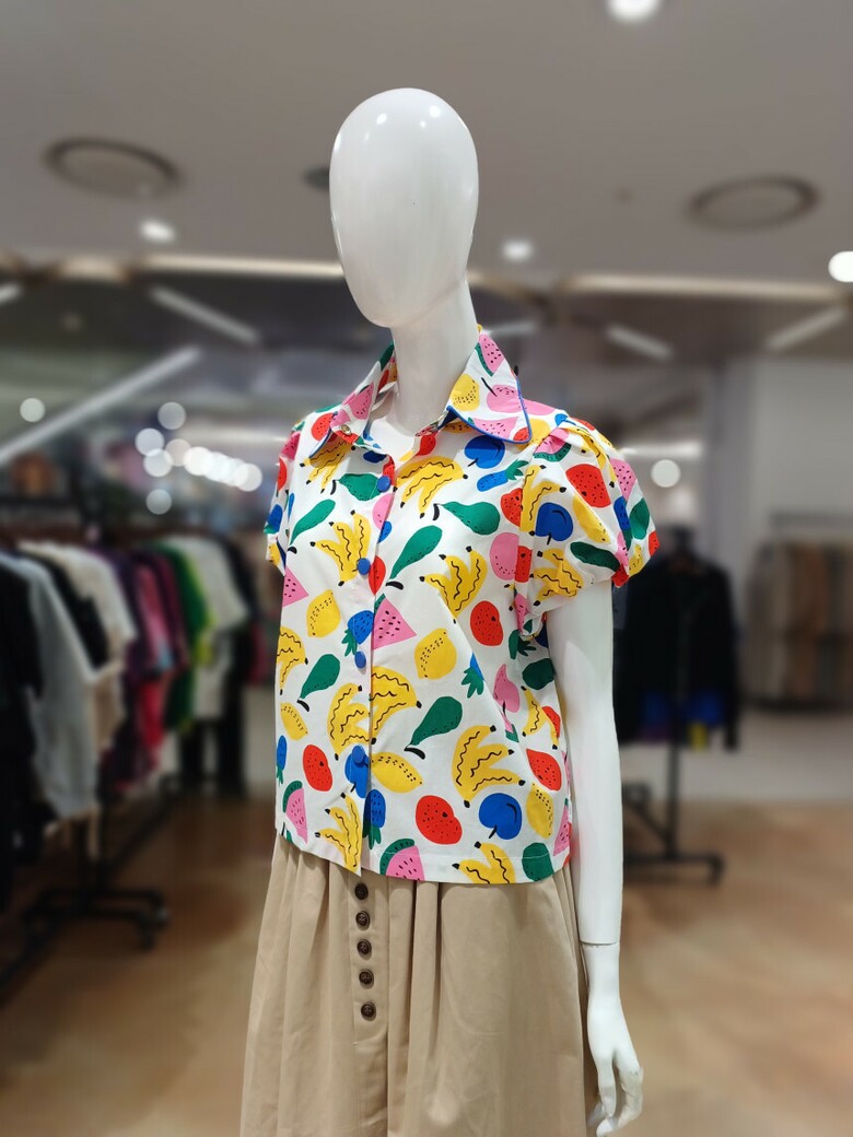 르니앤맥코이 과일프린트 소매셔링 블라우스MM06BL417