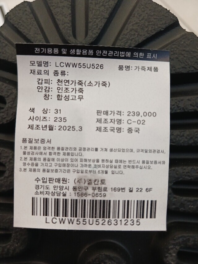 | 1. 제품 소재 (운동화인 경우에는 겉감, 안감을 구분하여 표시) | 상품상세참조 |